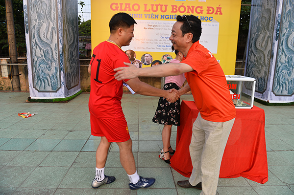 Chiều 7/5, hai diễn viên chính của phim Người phán xử gồm “ông trùm” Phan Quân - NSND Hoàng Dũng và con trai Phan Hải - diễn viên Việt Anh có trận đấu bóng đầy ý nghĩa tại Đại học Sao Đỏ, Hải Dương. Trận đấu còn có sự góp mặt của NSƯT Công Lý, Quốc Quân cùng các đồng đội trong V-Stars Club .