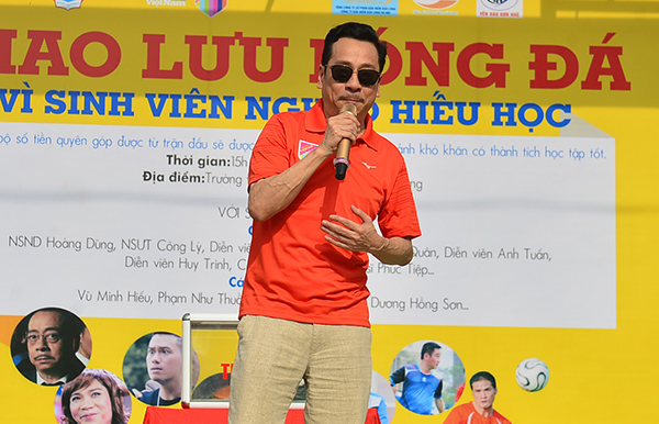 NSND Hoàng Dũng đại diện CLB trao 10 xuất học bổng để trao cho 10 gương mặt sinh viên nghèo hiếu học ngay sau khi kết thúc trận đấu.