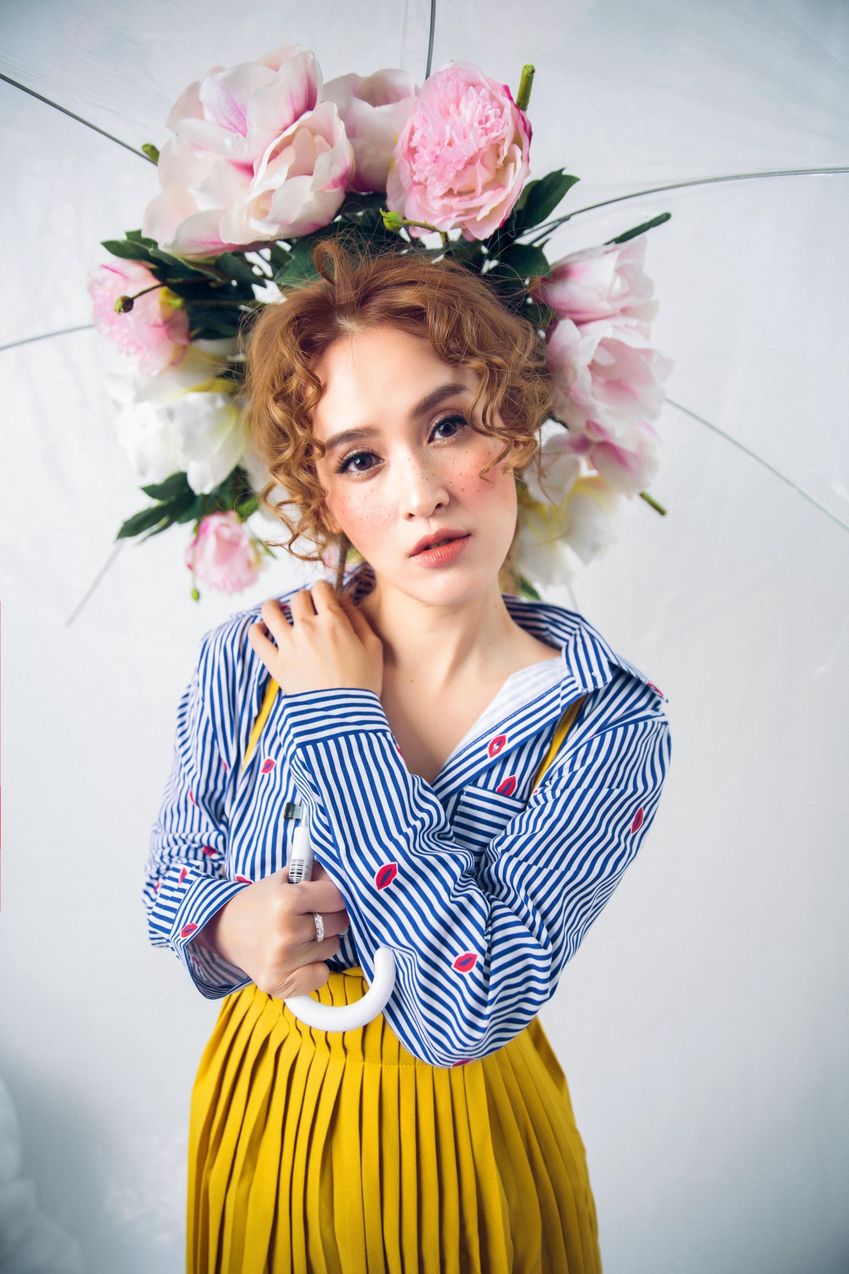 Tú Vi vừa thực hiện bộ ảnh thời trang với tạo hình mang màu sắc của các cô gái phương Tây. Người đẹp chọn lối trang điểm trong suốt cùng gam hồng chủ đạo, qua đó tạo điểm nhấn với lớp má hồng tôn gò má và những đốm tàn nhang đặc trưng.
