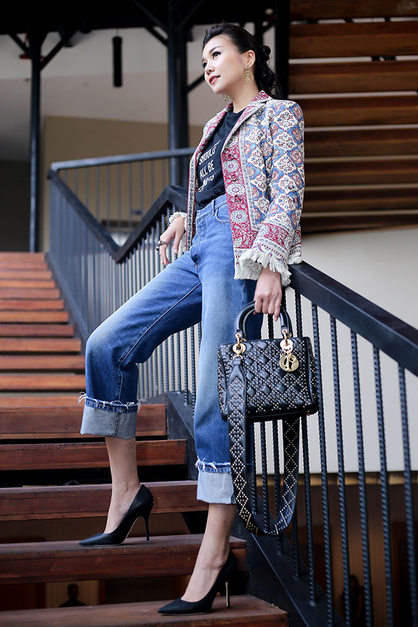 Người đẹp khéo léo trong việc kết hợp phụ kiện hợp”rơ” với trang phục, mắt kính đen, túi xách, giày cao gót đều là những món đồ thời thượng thuộc thương hiệu Christian Dior.