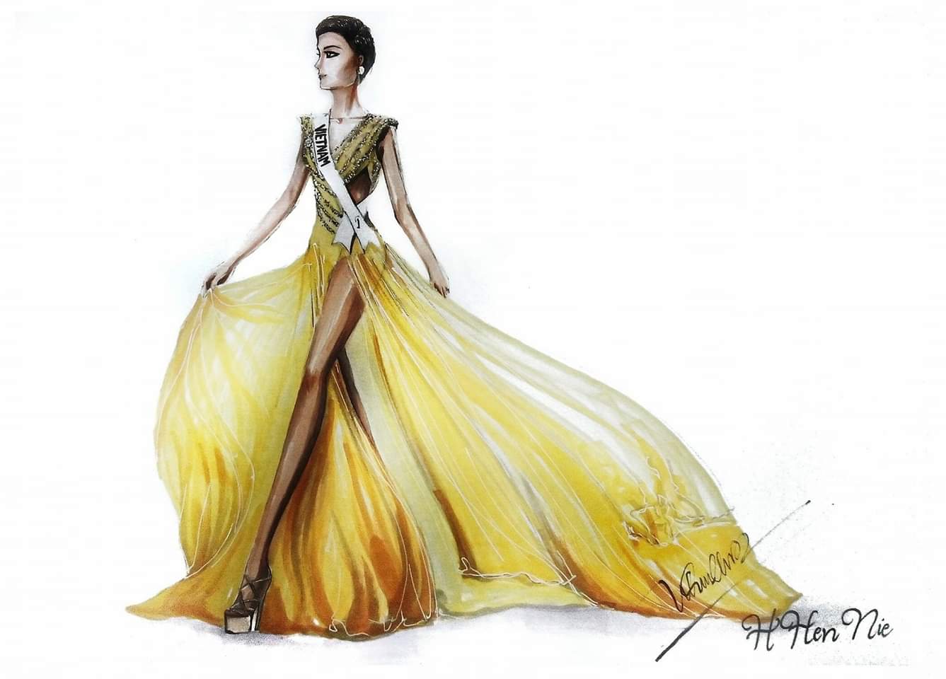 Vào thời điểm H'Hen Niê in top 5 với trang phục bán kết tạo nên lịch sử đã được Quốc Việt vẽ lại.