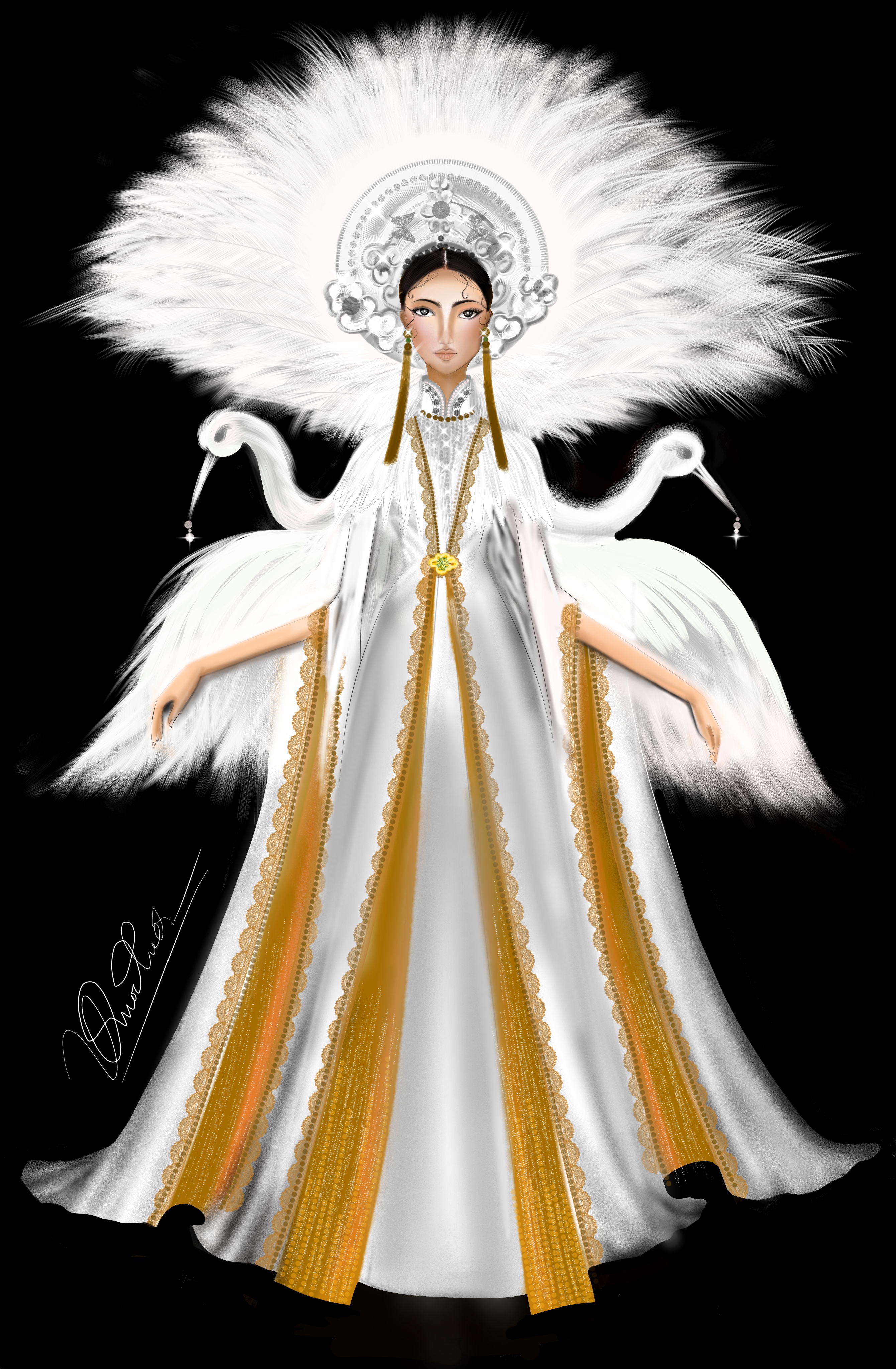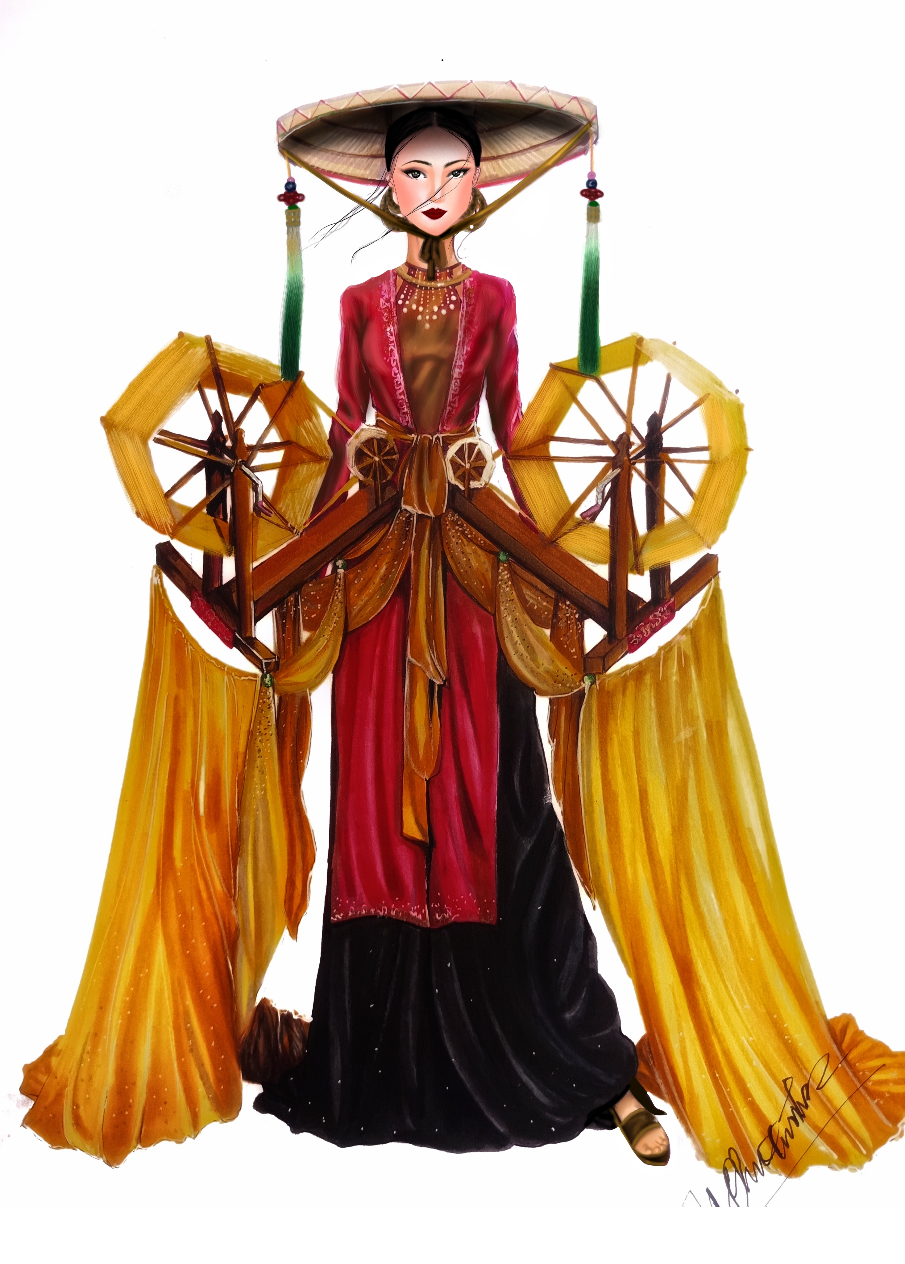 Trong những mẫu thiết kế, em tâm đắt nhất là Nàng Lụa. Lụa không đơn thuần chỉ một loại vải, đó là tinh hoa của dân tộc Việt Nam. Hàng ngàn năm qua lụa chiếm một vị trí không thể nào quên trong lòng của một người con đất Việt.