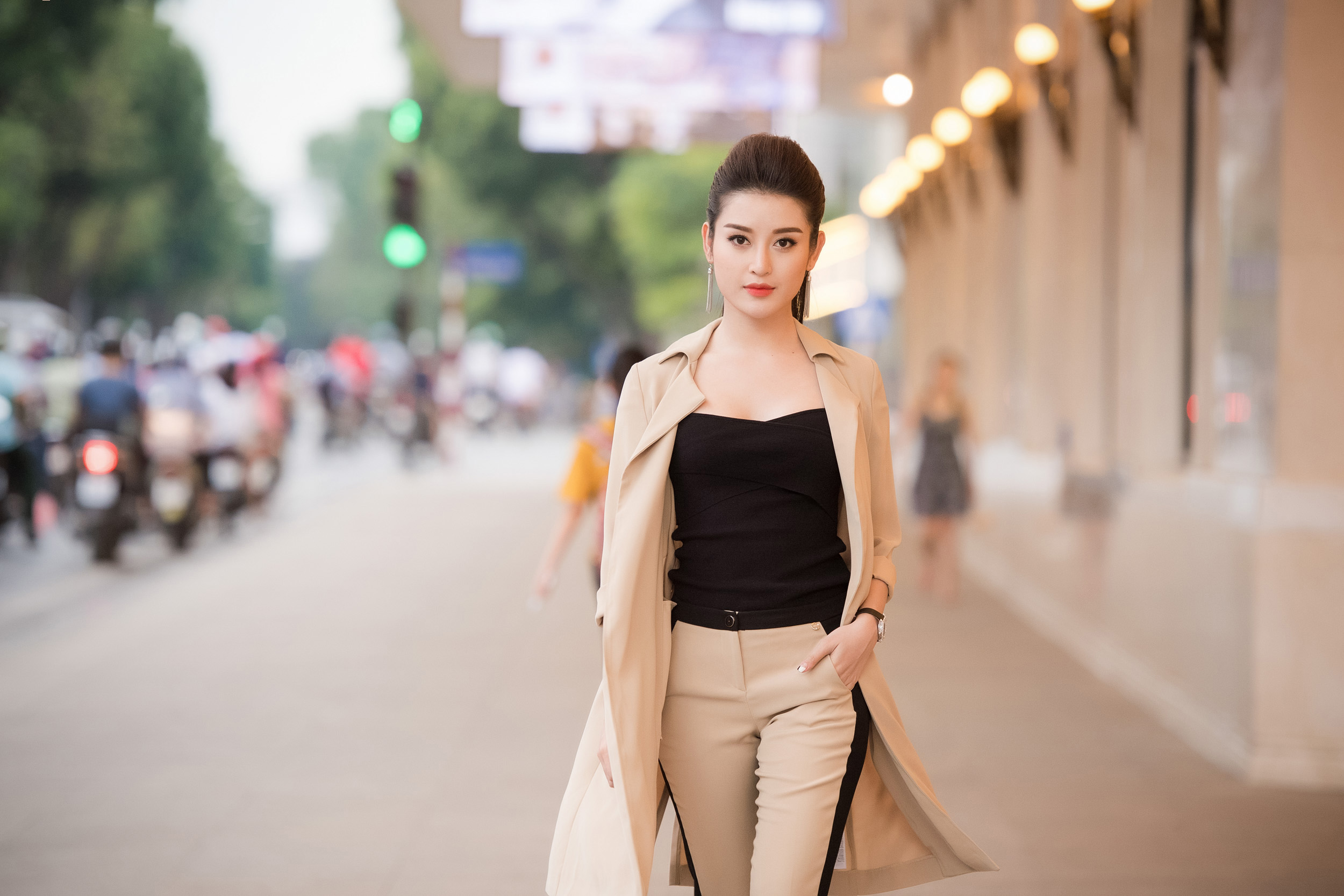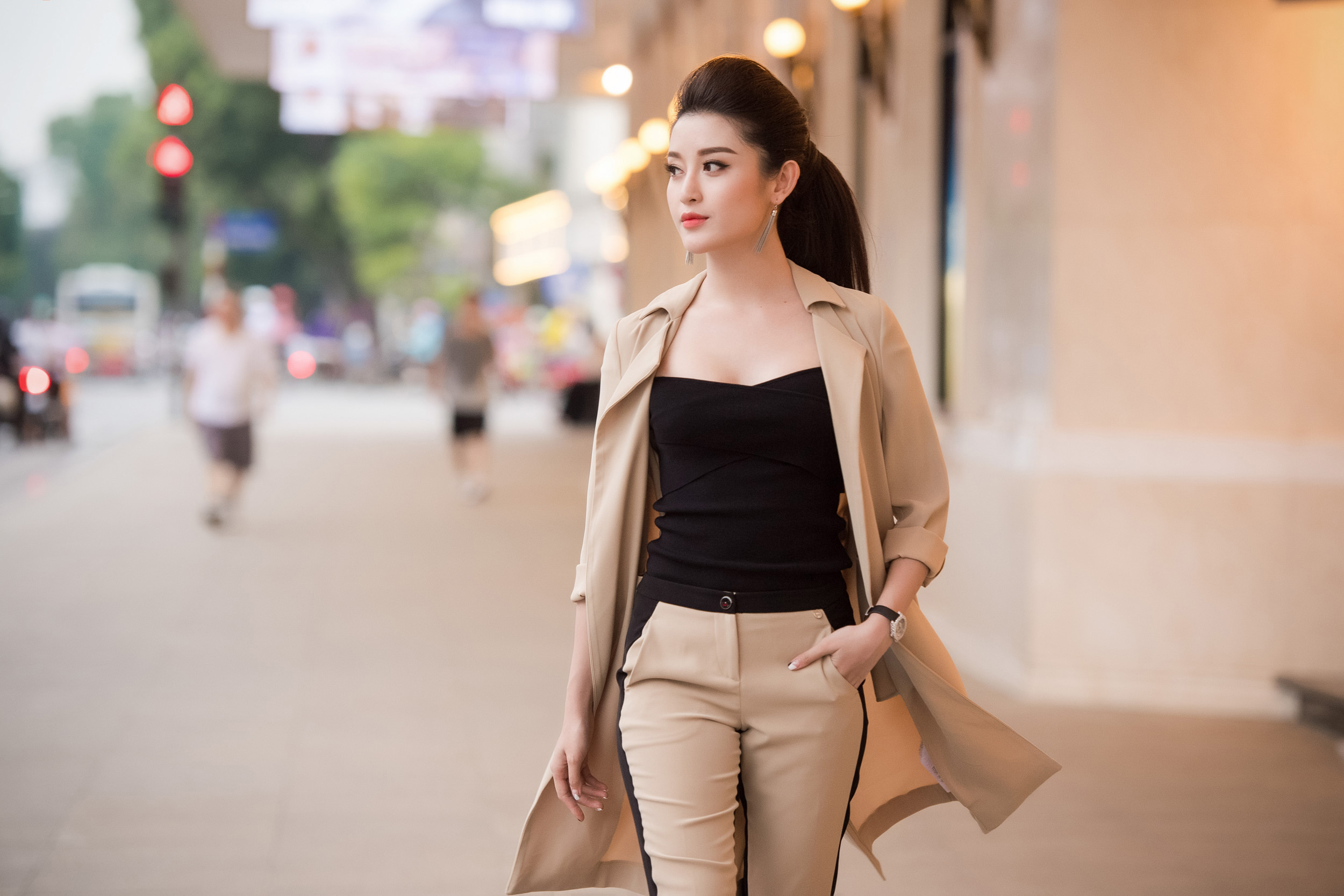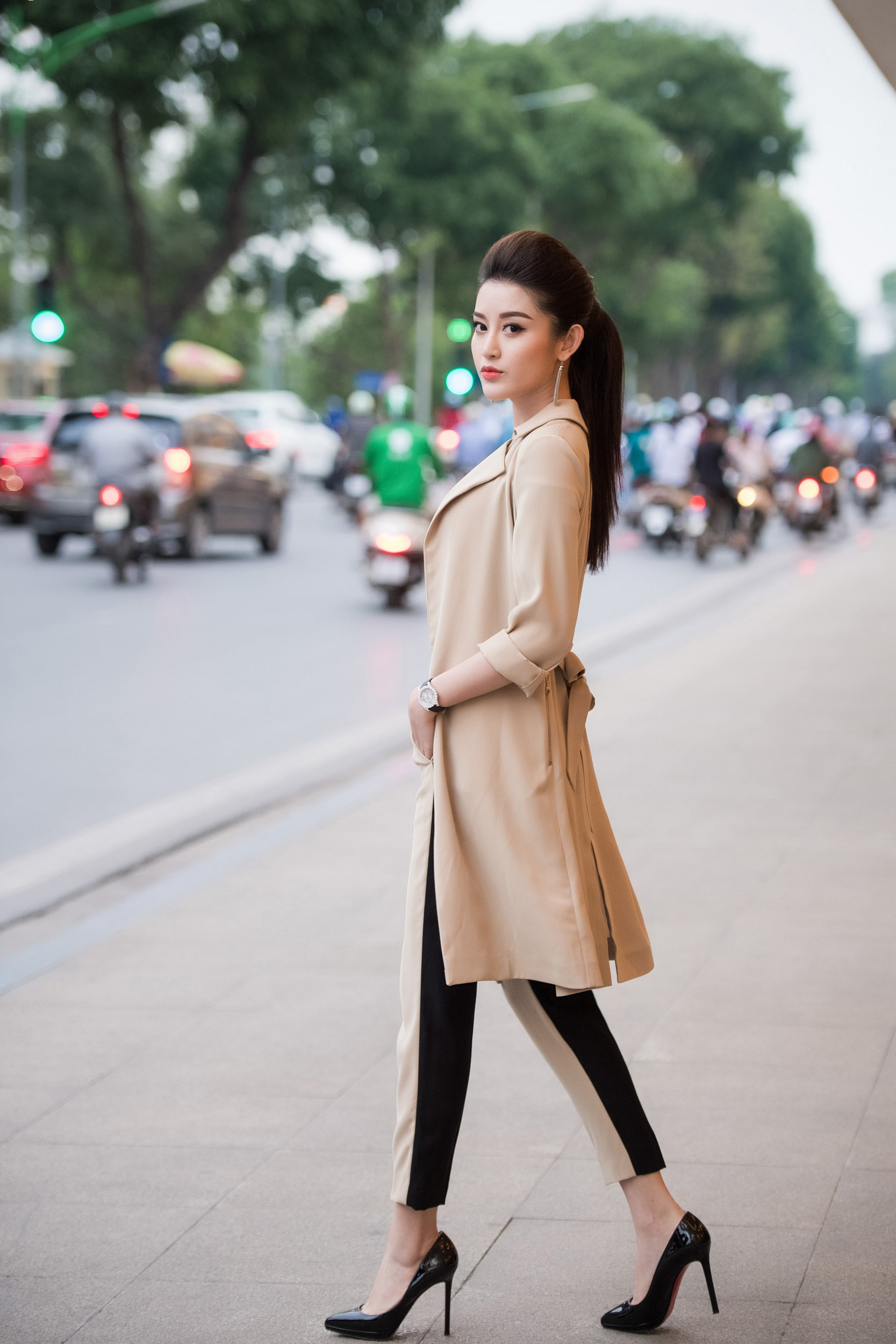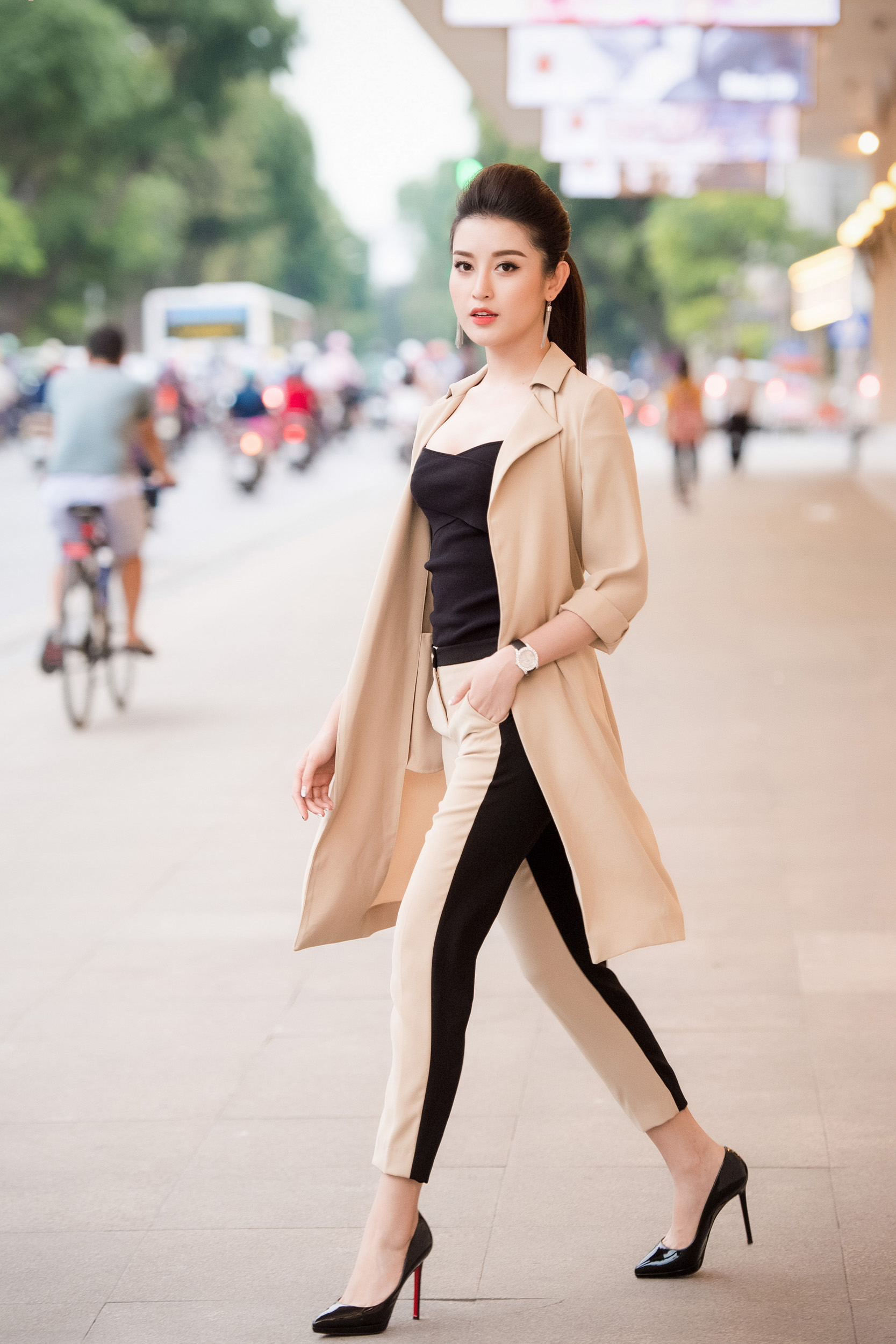 Lựa chọn trang phục độc đáo này không chỉ khiến Huyền My trông năng động, tươi trẻ mà còn thể hiện sự tích cực thay đổi phong cách trước khi dự thi Hoa hậu Hòa bình Thế giới. Ngoài ra, phong cách mới cũng giúp người đẹp khoe khéo đôi chân dài miên man khi cô sải bước tự tin trên phố.