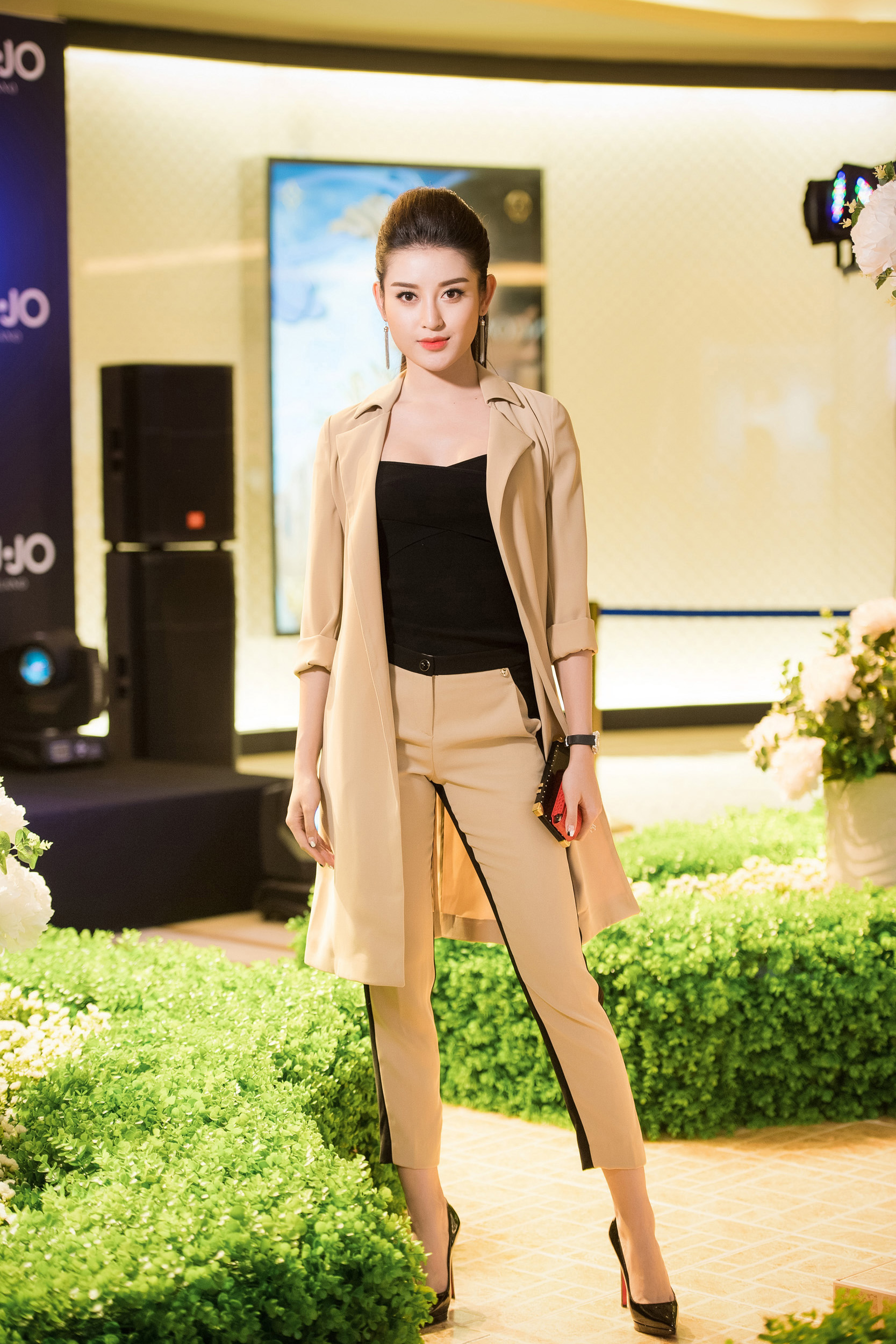 Trên nền trang phục đó, Huyền My chọn đi giày phom dáng mũi nhọn đơn giản nhưng lại nổi bật trong tổng thể.