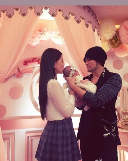 Châu Kiệt Luân cùng bà xã sinh năm 1993 trong tiệc mừng con gái lớn 100 ngày tuổi.