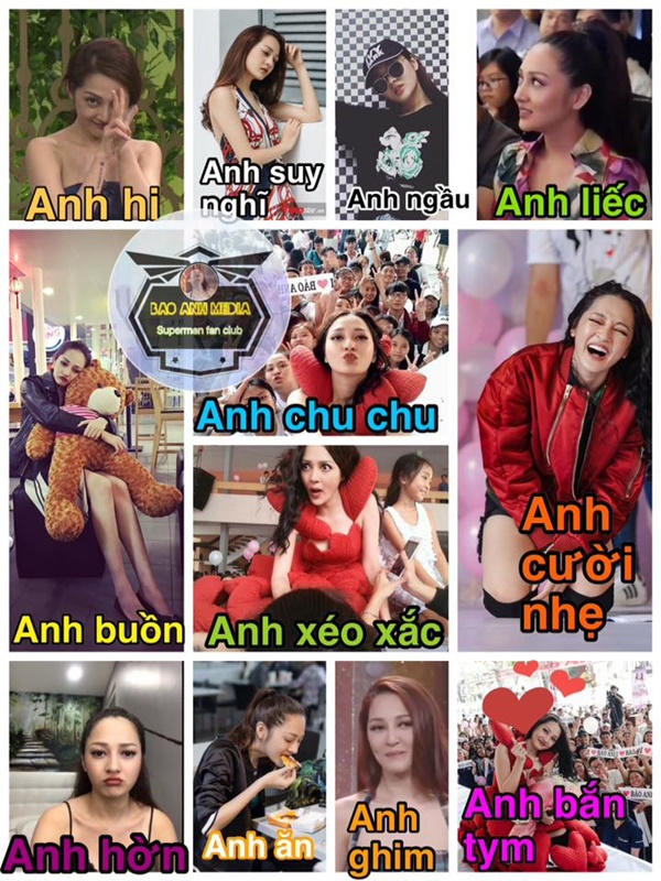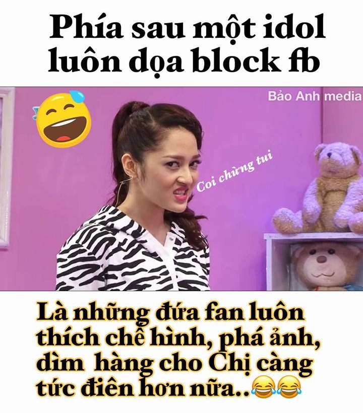 FC Bích Phương chắc chắn là cái tên không thể vắng mặt trong bảng danh sách. Thần tượng vốn là nữ ca sĩ nổi tiếng hài hước, “tưng tửng” nên cộng đồng fandom của Bích Phương cũng tích cực thể hiện cá tính này. Trên mạng xã hội, không ít lần cư dân mạng được dịp cười nắc nẻ vì loạt ảnh chế biểu cảm của Bích Phương.