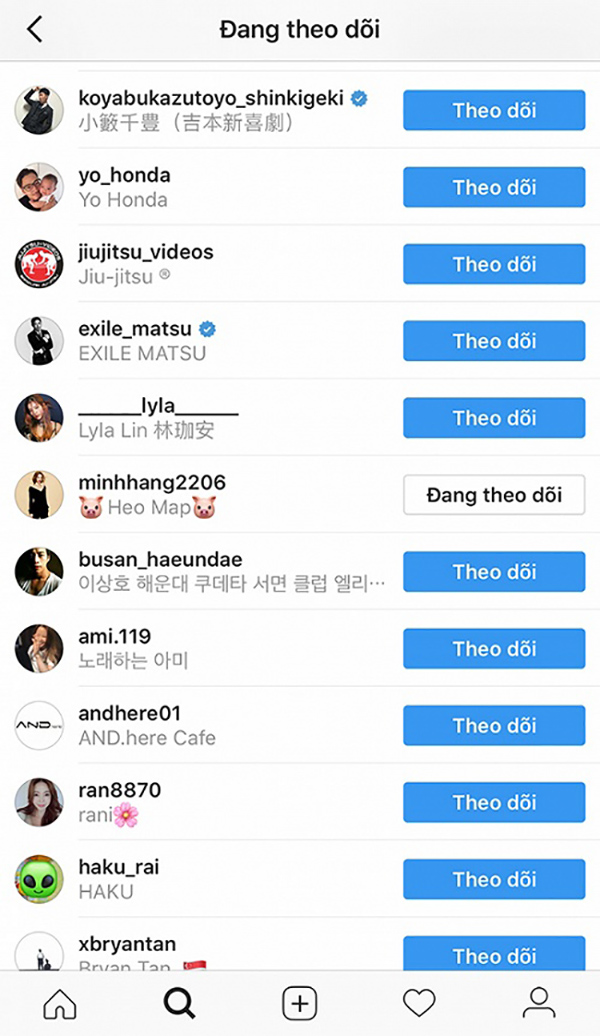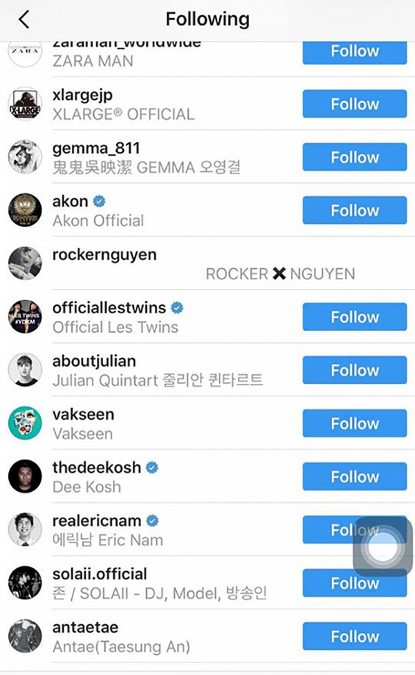 Jackson (GOT 7) “follow” Instagram của Rocker Nguyễn.