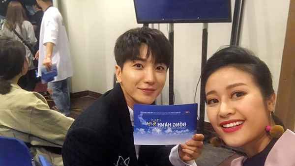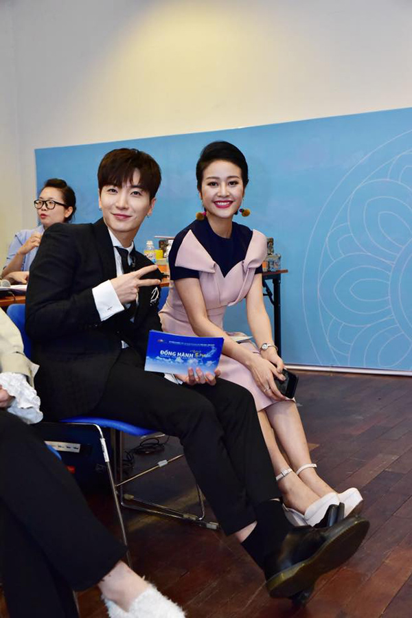 Đảm nhận vai trò MC chương trình Đồng hành - Going Tother Concert kỷ niệm 25 năm thiết lập quan hệ ngoại giao Việt Nam - Hàn Quốc, Phí Linh có dịp kết hợp chung với trưởng nhóm Super Junior Leeteuk.