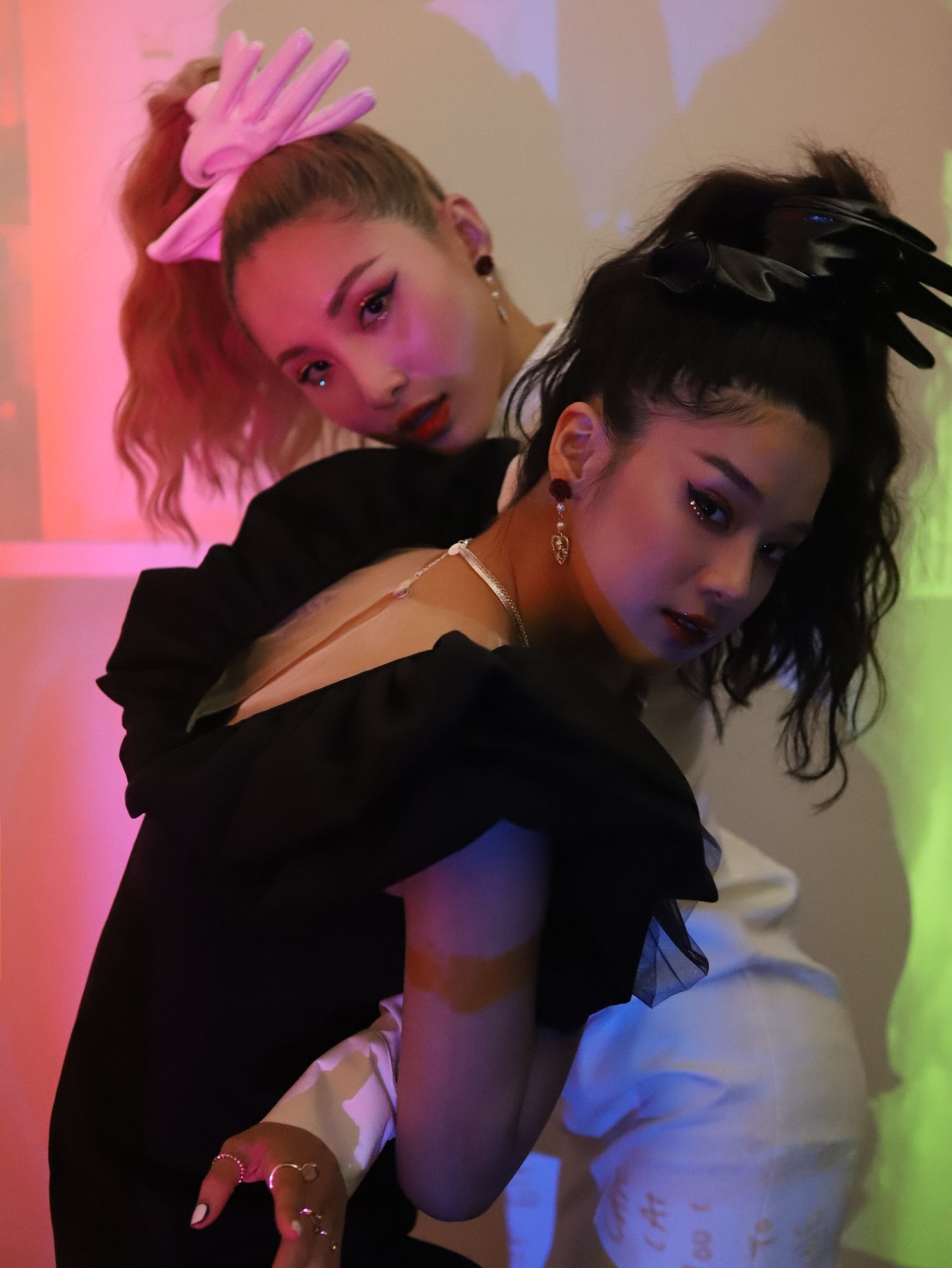 Cả hai xuất hiện với phong cách trang điểm và trang phục giống hệt nhau.