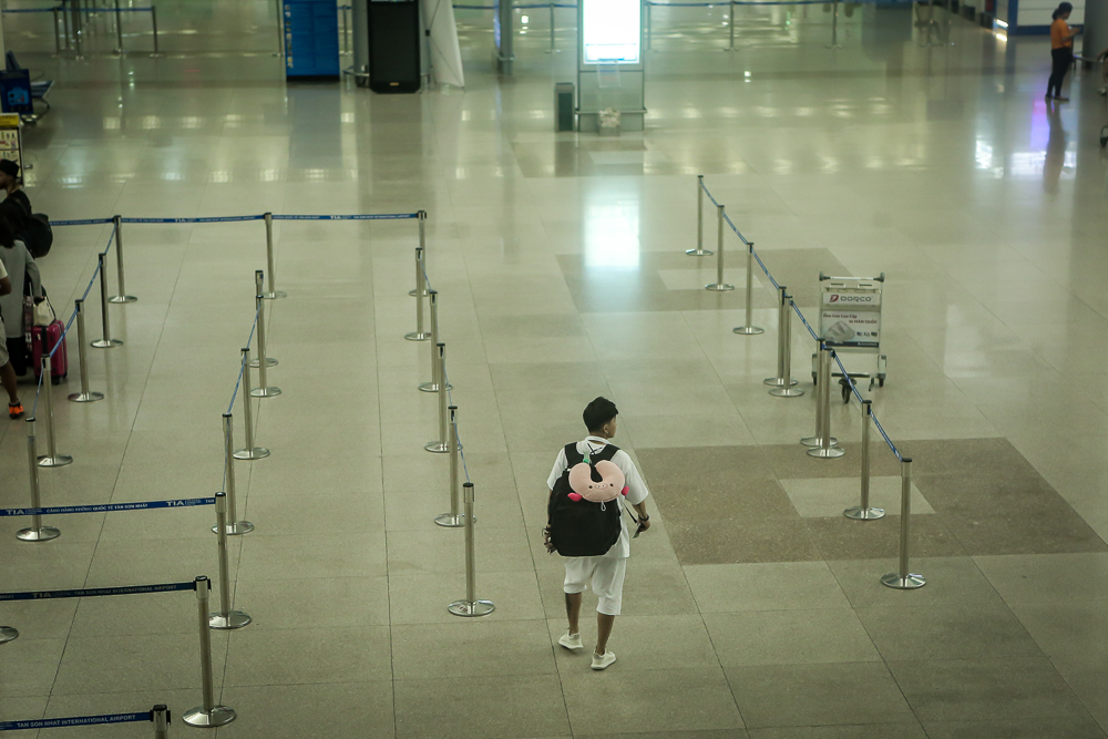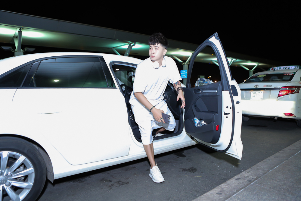 Xuất hiện tại sân bay Tân Sơn Nhất (TP.HCM) lúc nửa đêm, Chi Dân diện nguyên cây trắng thể thao năng động.