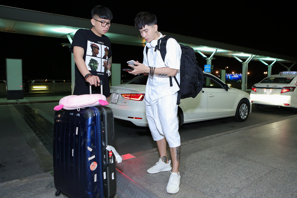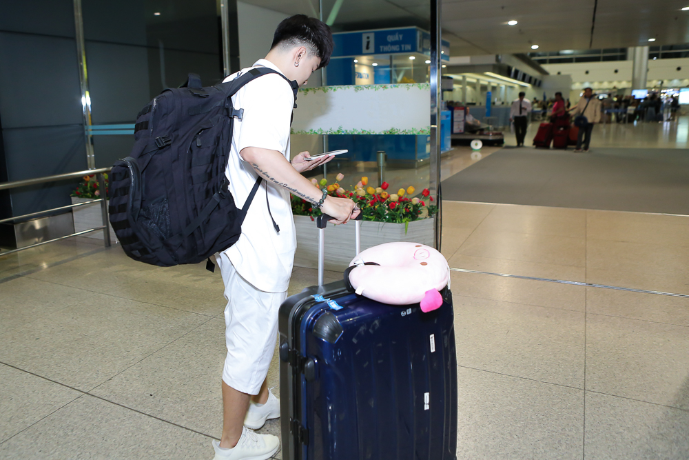 Đặc biệt, nam ca sĩ gây chú ý nhấn với chiếc gối cổ hồng dễ thương được gắn ngay trên ba lô để anh chàng tiện nghỉ ngơi.