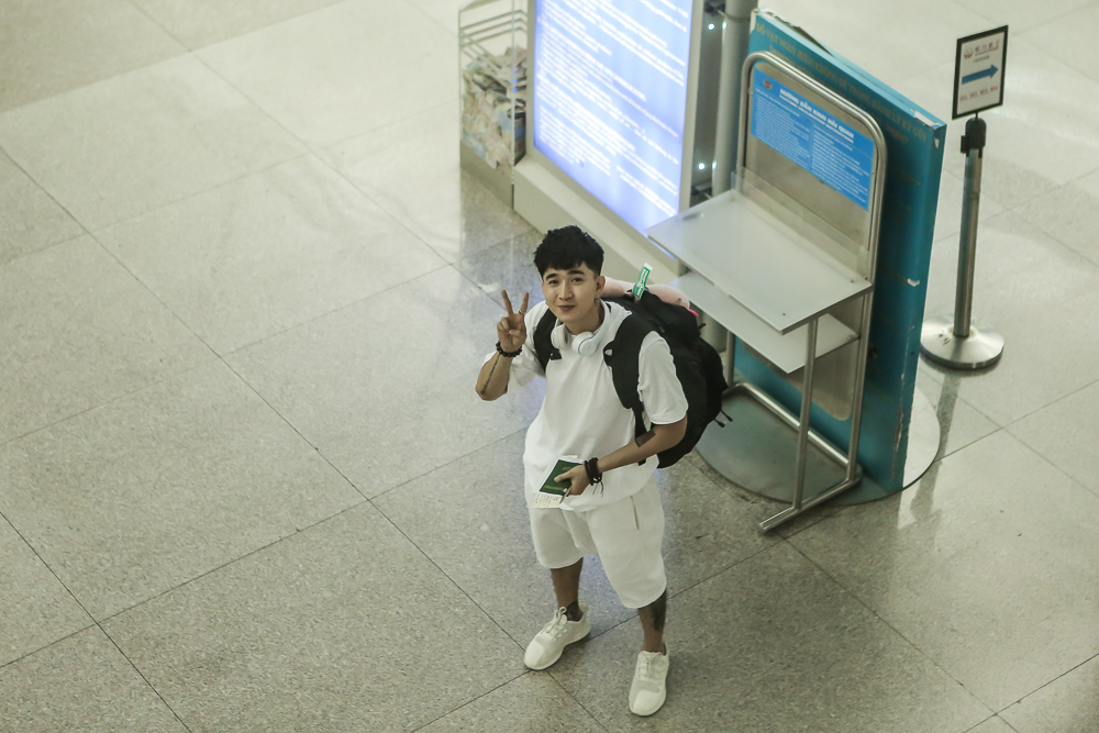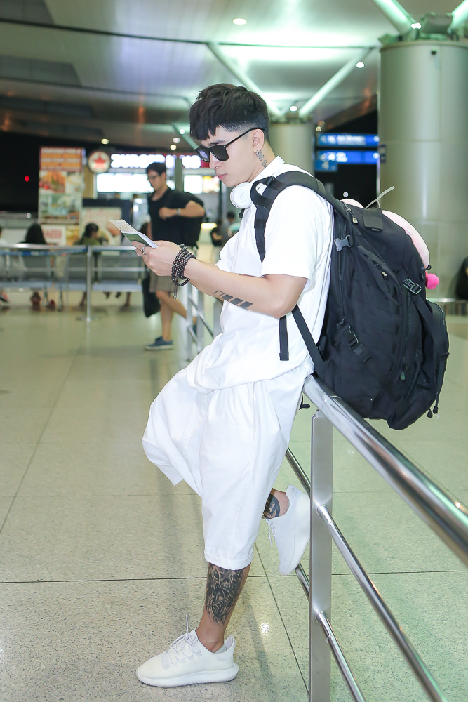 Với set đồ đơn giản nhưng không kém phần cá tính và trẻ trung khiến ca sĩ điển trai trở nên nổi bật ở sân bay.