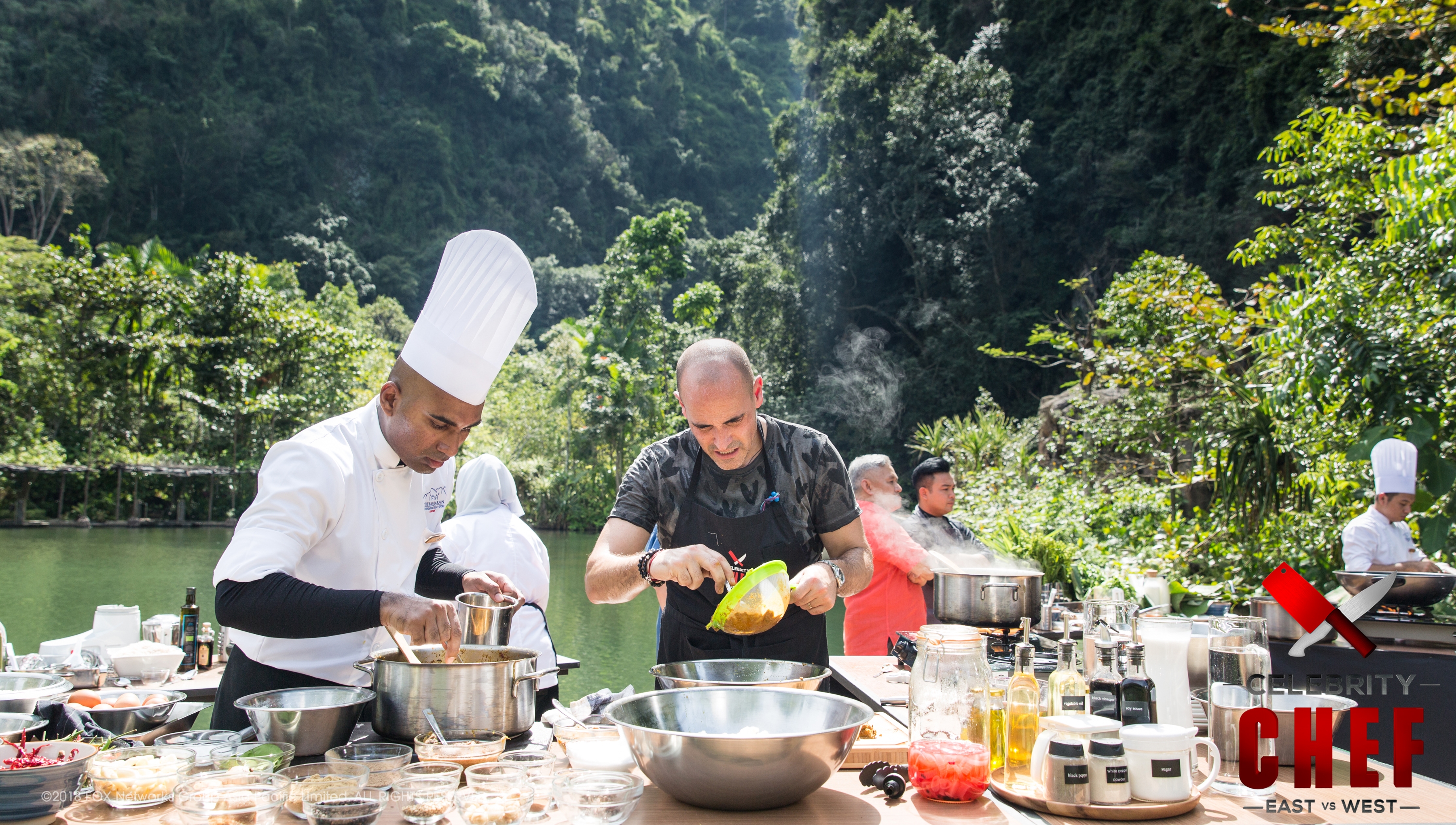 Sau khi trải nghiệm bữa ăn sáng truyền thống của người dân địa phương, trận đối đầu giữa hai đầu bếp Đông - Tây chính thức diễn ra tại một resort có khung cảnh đẹp như thiên đường. Cũng bị bịt mắt, cả hai được cảm nhận mùi vị cay nồng của món cà ri bò khô (Randang tok) ăn kèm cơm trắng - một trong những món ăn hồn cốt của ẩm thực Malaysia.