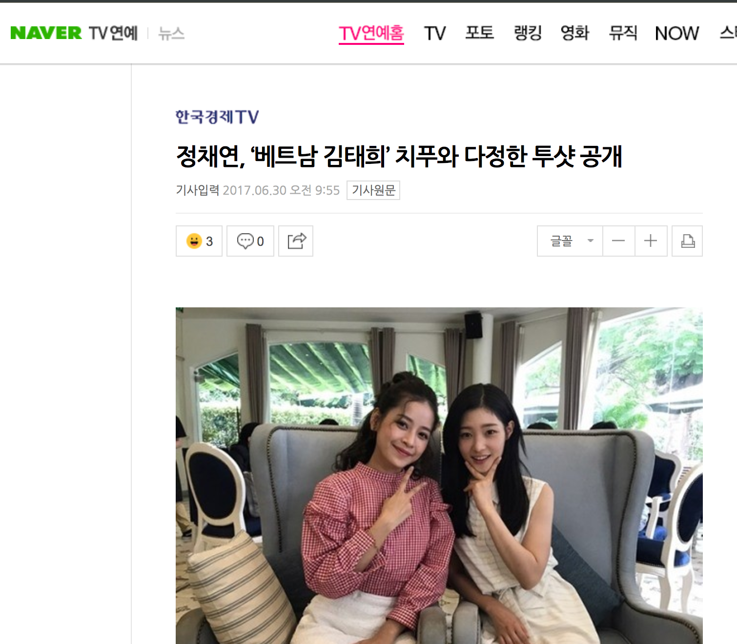 Vừa qua, nữ diễn viên xinh đẹp Chi Pu có khoảng thời gian ngắn gặp gỡ “nữ thần sắc đẹp thế hệ mới” - Chae Yeon (DIA) tại một quán cà phê ở Sài Gòn. Ngay sau đó, hàng loạt những trang tin tức điện tử lớn của Hàn Quốc đã đăng tin về buổi giao lưu này, trong đó phải kể đến những tờ uy tín ở xứ Kim Chi như Naver, Chosun, TvReport, YTN, Liveen,…