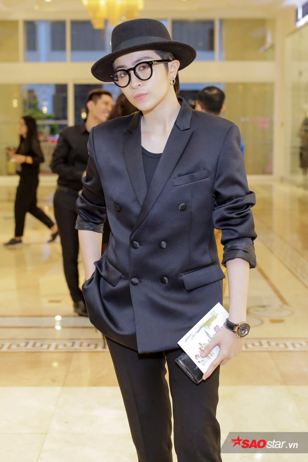 Gil Lê cực nam tính và cuốn hút với suit đen.
