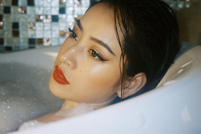 Chẳng cần đi đâu xa, Chi Pu biến phòng tắm thành studio tại gia.