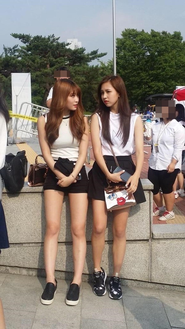 Dù bị chụp lén Momo và Mina vẫn xinh đẹp ngời ngời với gương mặt nhỏ và đôi chân nuột nà.
