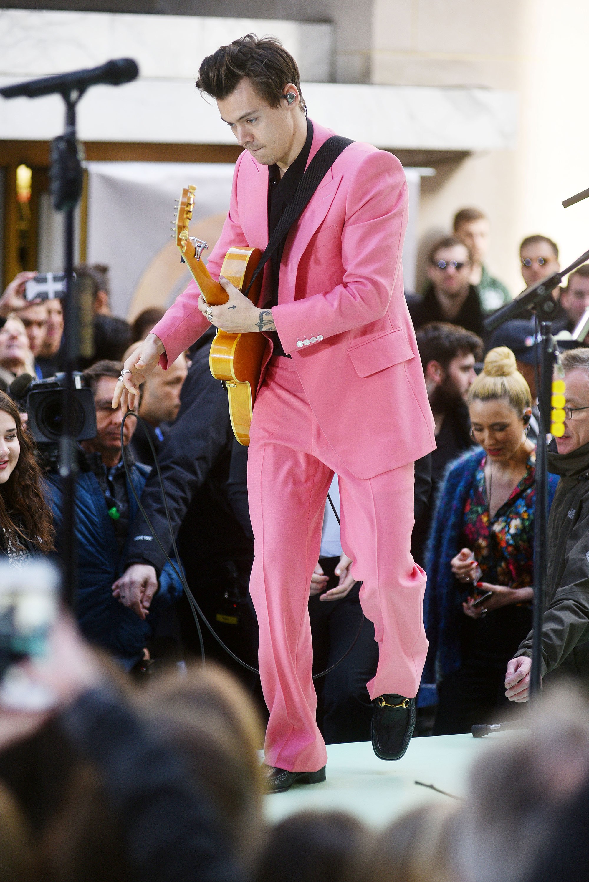Harry đầy nam tính dù diện vest hồng. Anh chàng khiến người hâm mộ đứng ngồi không yên với việc tạo mới mái tóc dài luộm thuộm bằng cách cắt ngắn gọn hơn, qua đó “đốn ngã” triệu con tim.