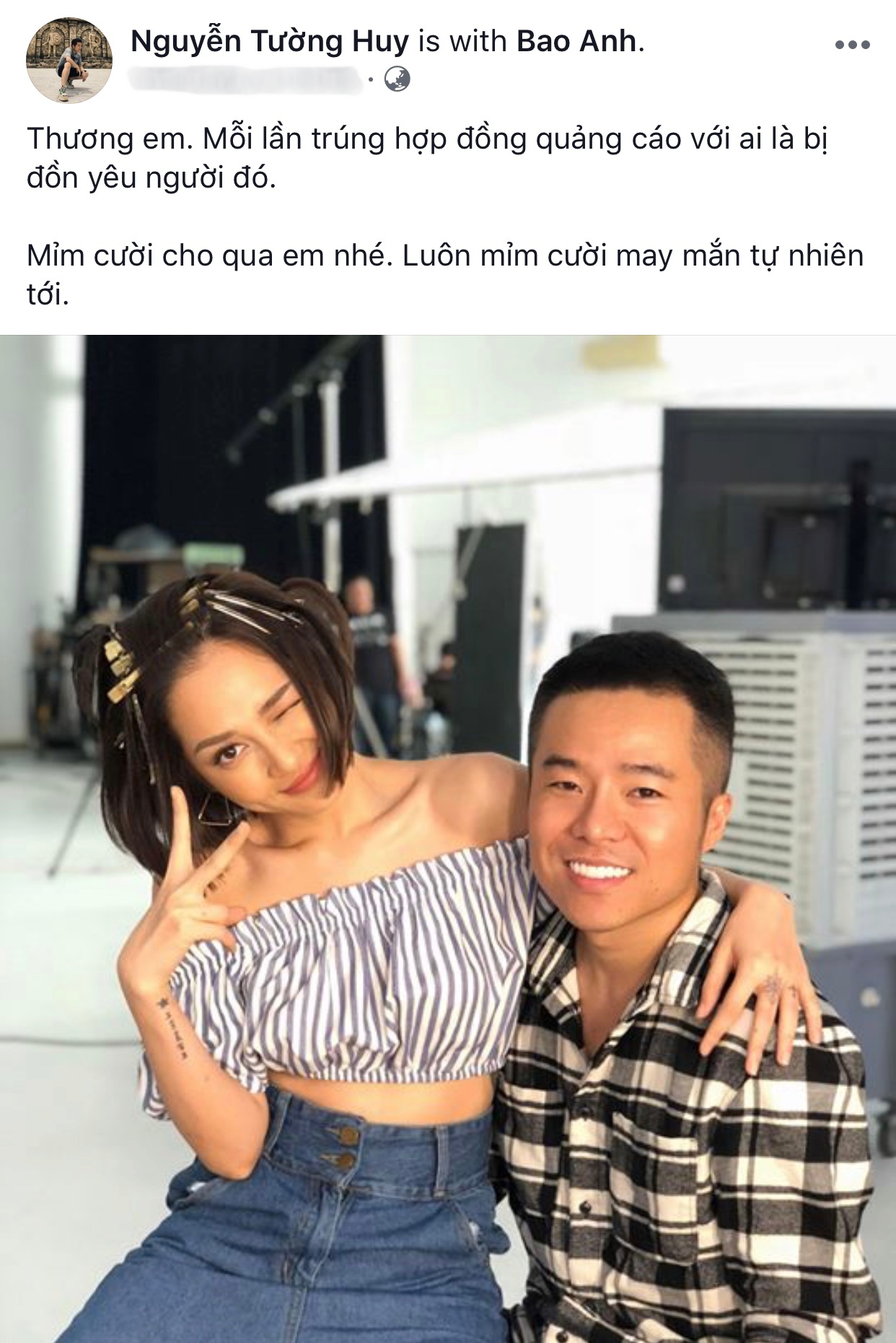 Dù không chú thích gì thêm, tuy nhiên nhiều người cho rằng đây chính là phản hồi từ Bảo Anh đối với những bình luận ác ý xuất hiện sau tin đồn tình cảm của cô. Trước đó, trên trang cá nhân, quản lý người đẹp cũng lên tiếng về nghi án hẹn hò Bùi Tiến Dũng. Anh viết: “Thương em. Mỗi lần trúng hợp đồng quảng cáo với ai là bị đồn yêu người đó. Mỉm cười cho qua em nhé. Luôn mỉm cười may mắn tự nhiên tới”.