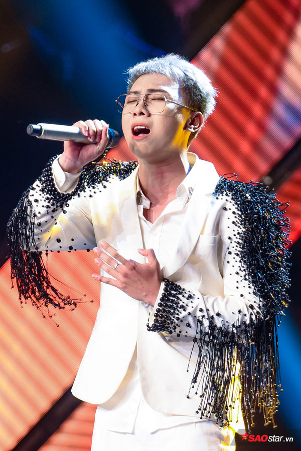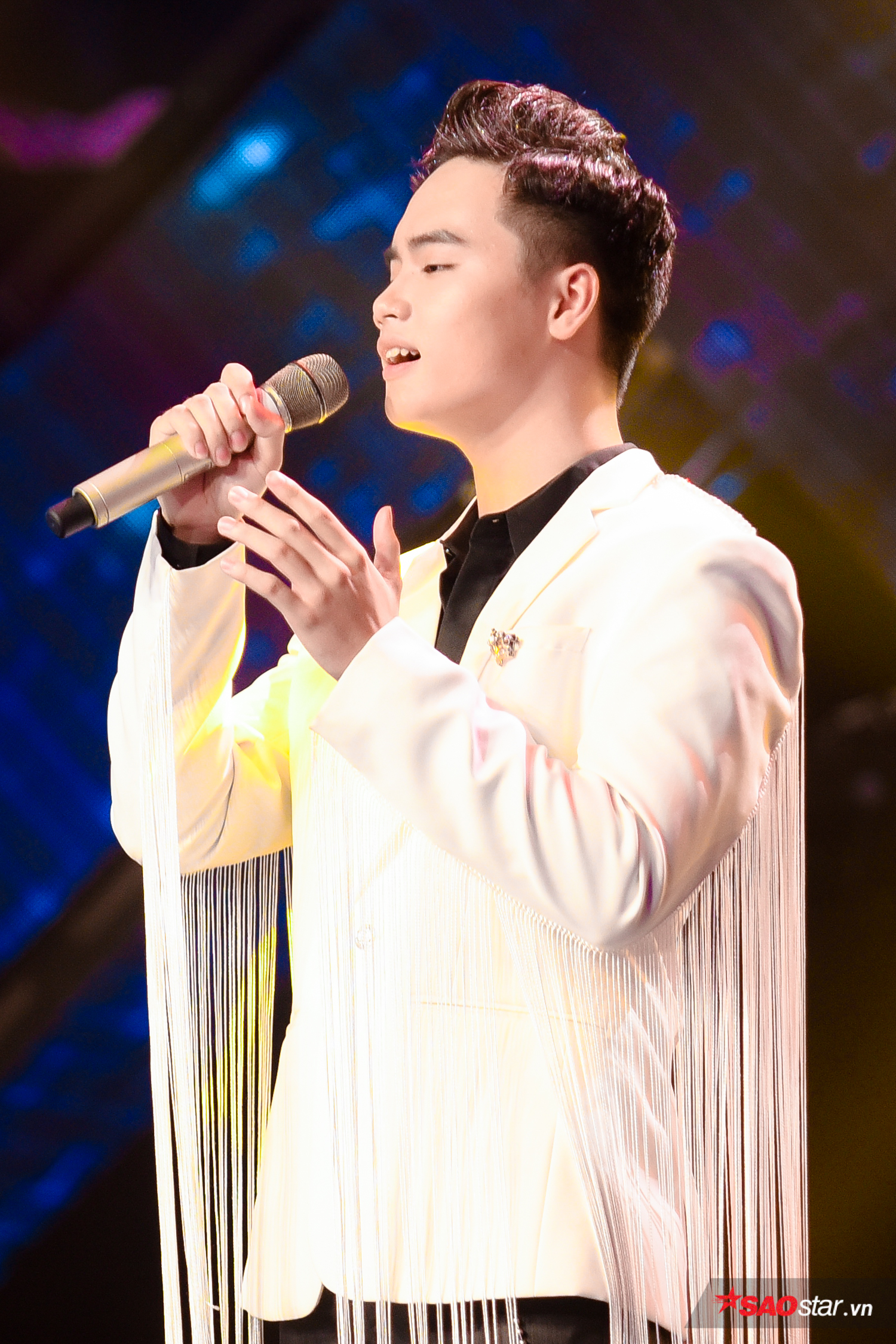 Khác với phong cách nhí nhảnh của Hằng My, Bùi Tuấn Anh đã biểu diễn Xin em với chất giọng trầm và sâu lắng.