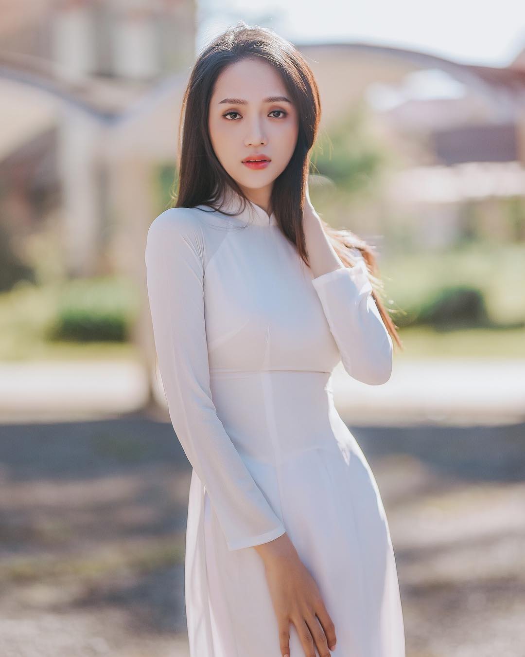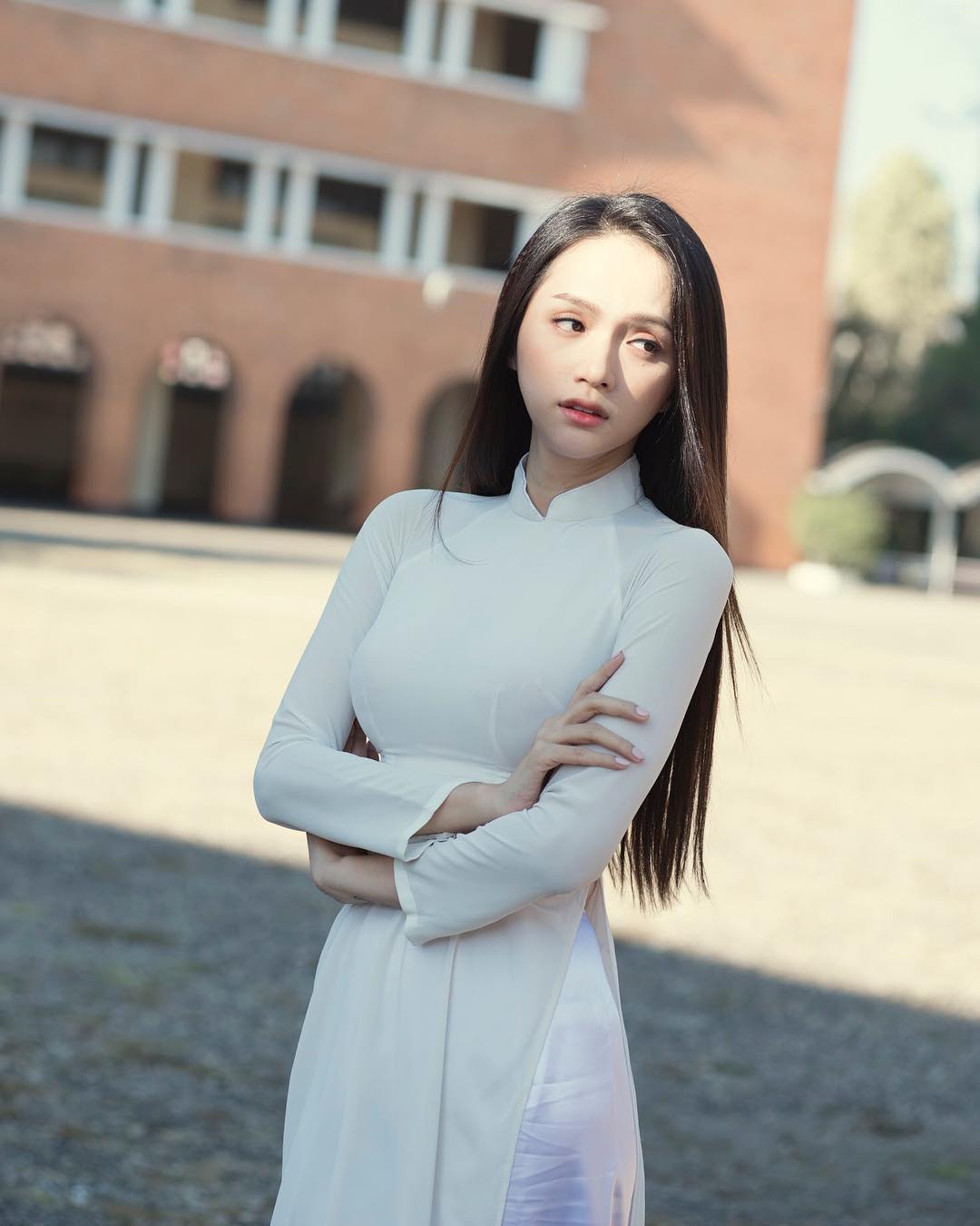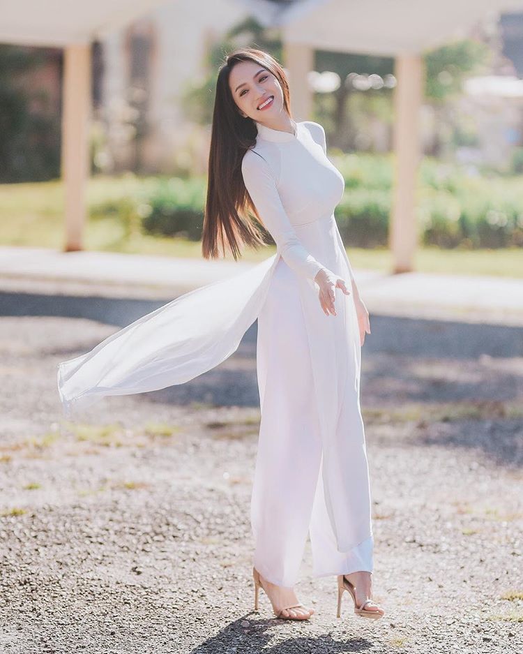 Và chính Hương Giang - chủ nhân của câu nói đấy cũng không thể nằm ngoài “cơn bão” đấy khi chế lại câu nói của mình. Hương Giang chia sẻ “Mặc áo dài là của stylist, nhưng làm mọi người ngẩn ngơ là lỗi của Giang” đi kèm đó là những hình ảnh với chiếc áo dài trắng.