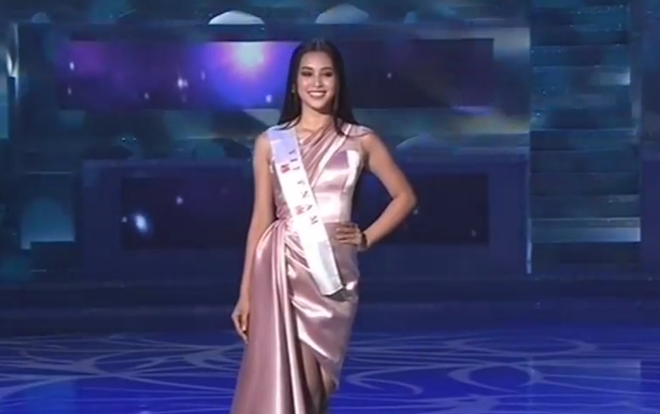19h20: Tiểu Vy xuất hiện trên sân khấu lớn Miss World 2018 cùng 29 đối thủ. Cô giới thiệu bản thân và chia sẻ ước mơ trở thành một giáo viên tốt vì cô yêu thích trẻ con. Trong lần sải bước đầy tự tin này, Tiểu Vy diện chiếc váy có hiệu ứng xếp ly hiện đại và tất nhiên là màu hồng - màu sắc được ưa chuộng tại Hoa hậu Thế giới.