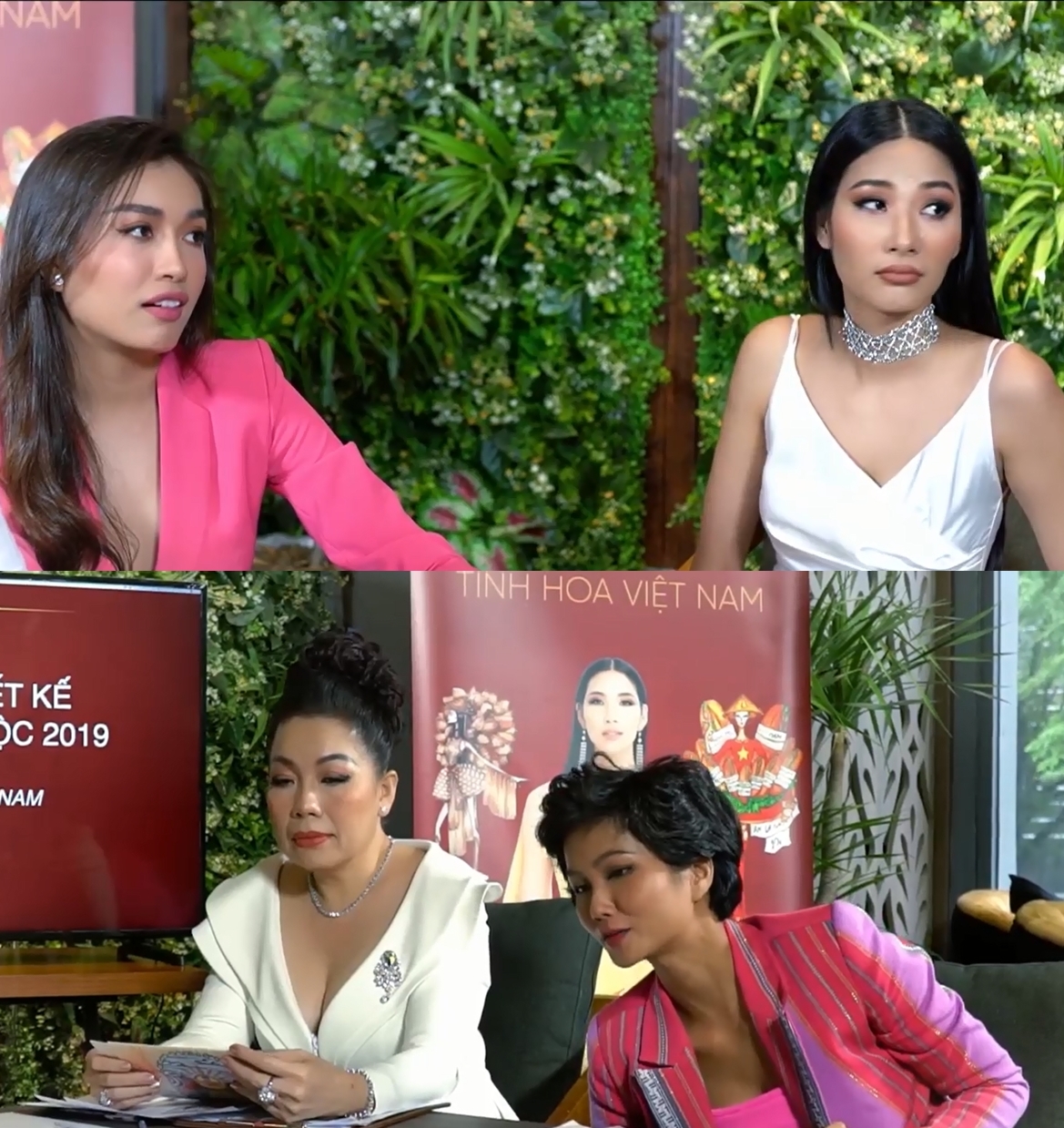 Trong đoạn video giới thiệu buổi chấm điểm chọn Top 18 thiết kế trang phục dân tộc mới đây, Hoàng Thùy “buồn xo” vì không tìm được tiếng nói chung với H'Hen Niê và Lệ Hằng.