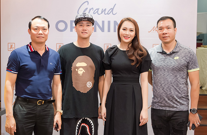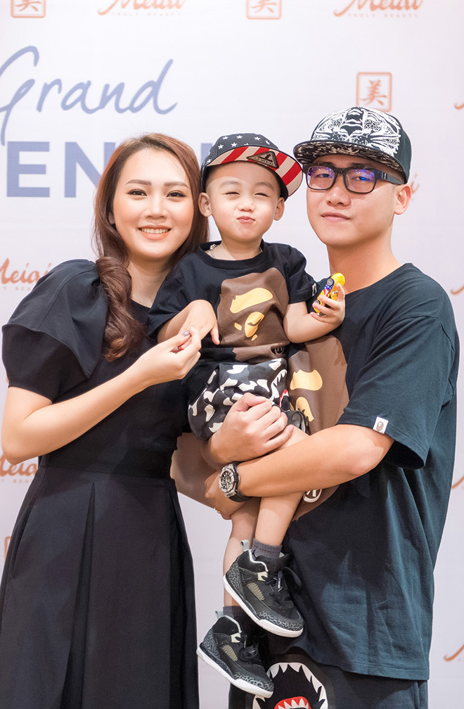 Ngoài những người bạn, đồng nghiệp thân thiết nhiều năm đến chúc mừng Ngọc Thạch lên chức bà chủ thì không thể vắng mặt là ông xã Đỗ Bình Dương và quý tử Ricky. Hai bố con diện trang phục đồng điệu và đi siêu xe McLaren 650S Spider đến để góp mặt trong ngày vui của Ngọc Thạch.