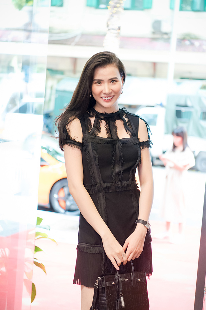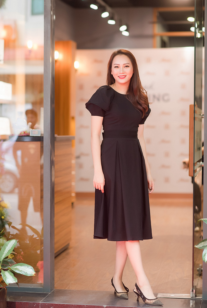 Siêu mẫu Ngọc Thạch kín đáo trong bộ váy đen thanh lịch.