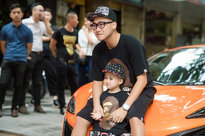 Thiếu gia Đỗ Bình Dương lái siêu xe 16 tỷ đưa con trai tới chúc mừng bà xã lên chức bà chủ.
