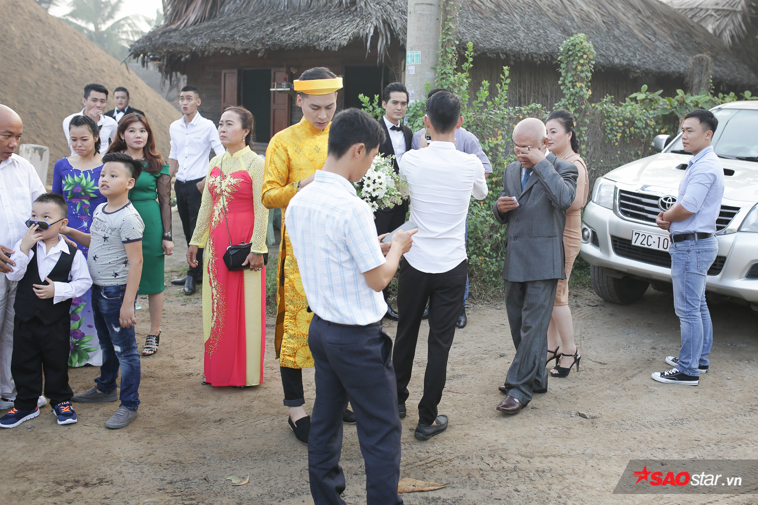 Người thân, họ hàng phía chú rể xuống rước dâu khá đông. Ai cũng vui vì Phi Hùng đã tìm được ý trung nhân vừa mắt, lại còn là người nổi tiếng trong showbiz Việt.