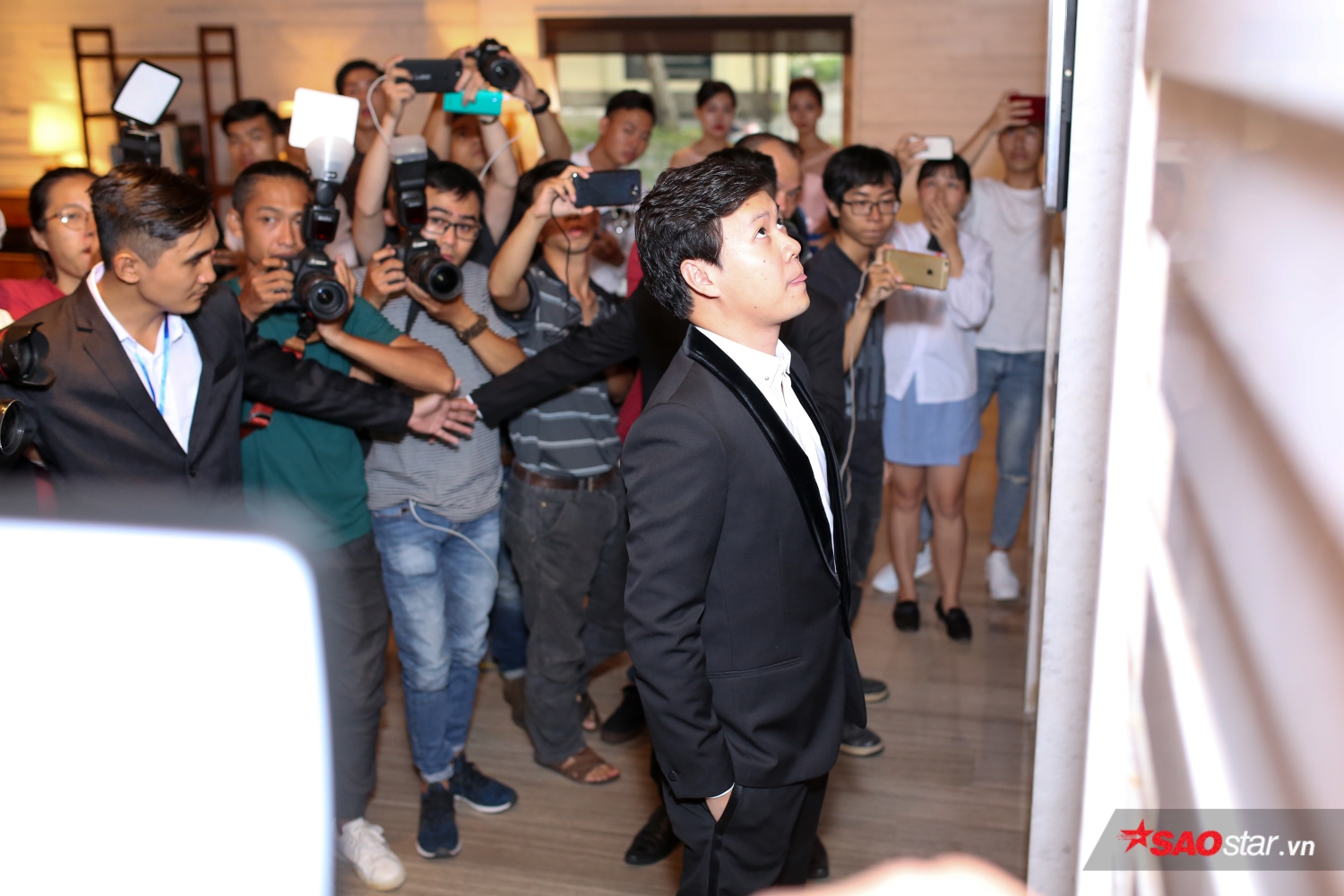 Sự xuất hiện của ông xã Đặng Thu Thảo nhanh chóng thu hút sự quan tâm của phóng viên.