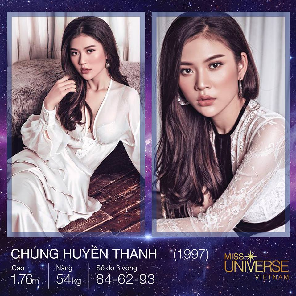 Được đánh giá là một trong những gương mặt nổi bật tại Hoa hậu Hoàn vũ Việt Nam 2017, Chúng Huyền Thanh là một nhân tố tiềm năng. Cô gái trẻ sở hữu khuôn mặt ưa nhìn, cùng chiều cao 1,76 m và số đo ba vòng 84-62-93 luôn thu hút mọi ánh nhìn khi xuất hiện.