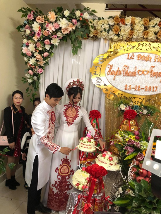 Cả hai đẹp đôi trong lễ ăn hỏi.