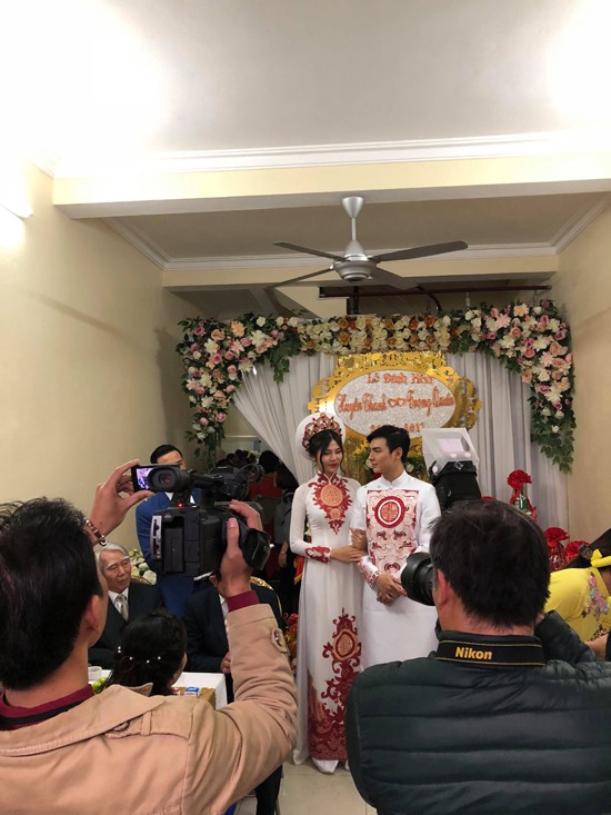 Trước đó, Chúng Huyền Thanh là gương mặt nổi bật của cuộc thi Hoa hậu Hoàn vũ Việt Nam 2017 nhưng cô đột ngột tuyên bố rút lui khỏi chương trình vì lý do sức khỏe khiến nhiều người hụt hẫng. Có nhiều đồn đoán cô gấp rút tổ chức lễ hỏi là để chạy bầu. Tuy nhiên, Á quân The Face 2016 nhanh chóng phủ nhận tin đồn. Chuyện hôn nhân của cô không phải là mối tình chớp nhoáng, mà trải qua cả quá trình tìm hiểu lâu dài.