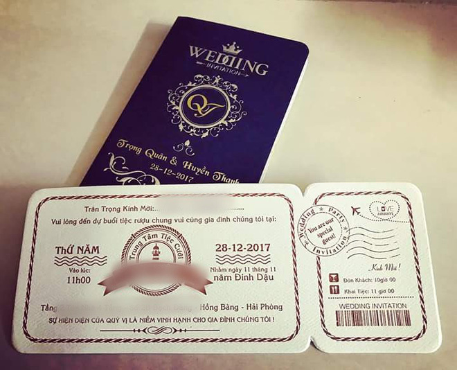 Thiệp cưới của cả hai được thiết kế đẹp mắt và sang trọng. Đám cưới của cặp đôi diễn ra vào ngày 28/12 tại Hải Phòng.
