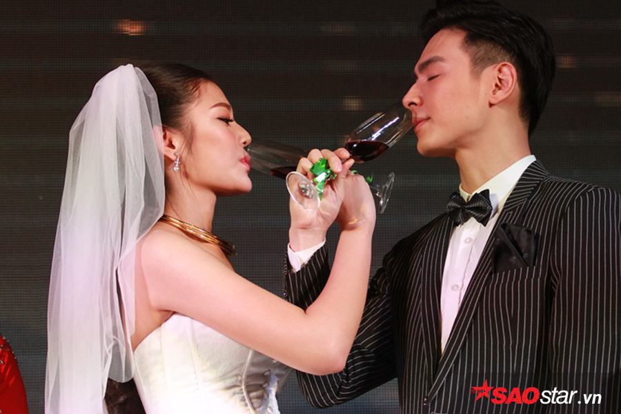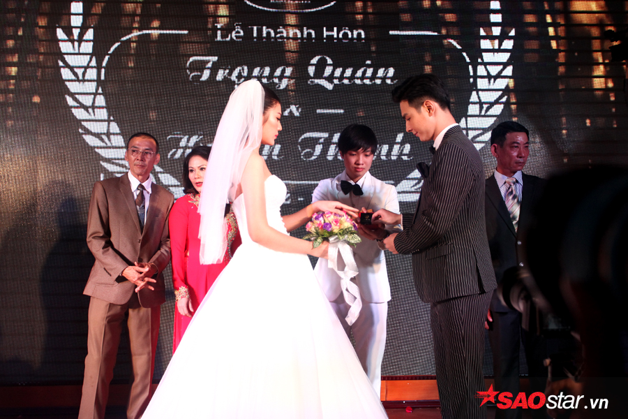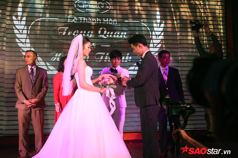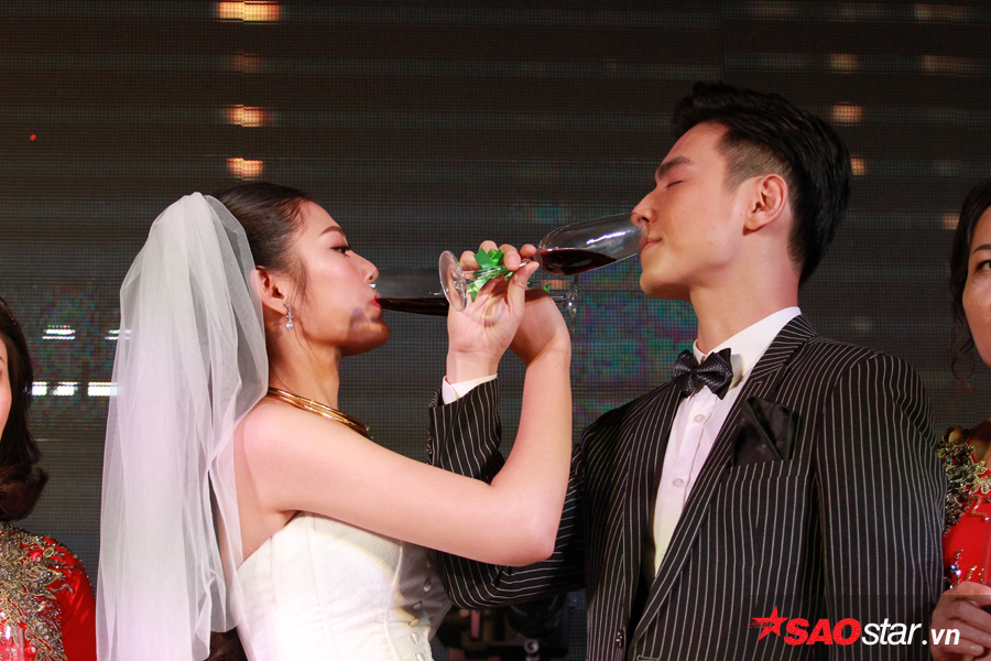 Đặc biệt, sau khi kết thúc nghi lễ, chú rể Jay Quân không ngần ngại “khoá môi” cô dâu ngay tại lễ đường. Màn thể hiện tình cảm của đôi vợ chồng mới cưới khiến quan khách hết sức thích thú.
