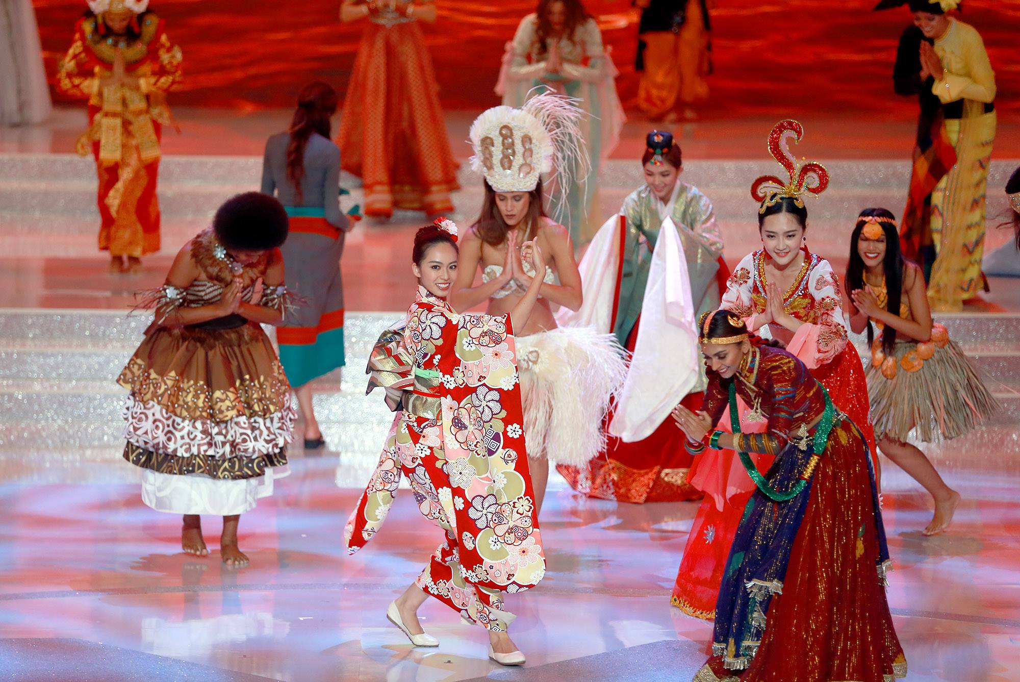 18h45: Các thí sinh Miss World 2017 đồng diễn mở màn cho đêm Chung kết.