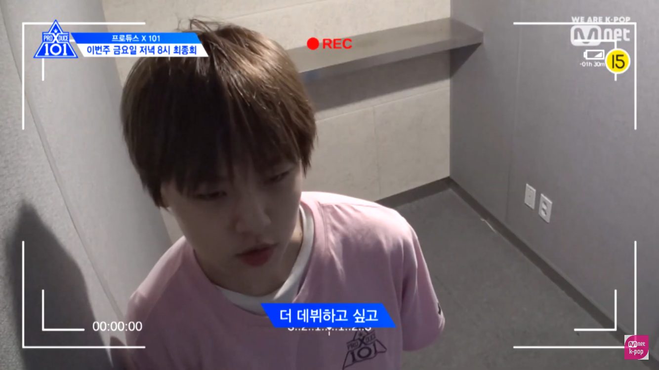 Trên nền ảnh là giọng nói của một thực tập sinh khác, họ chia sẻ cảm xúc cá nhân và tiết lộ rằng họ lo lắng và buồn về đêm chung kết. Mặt khác, các thực tập sinh đều cầu nguyện, hy vọng mình sẽ được ra mắt.