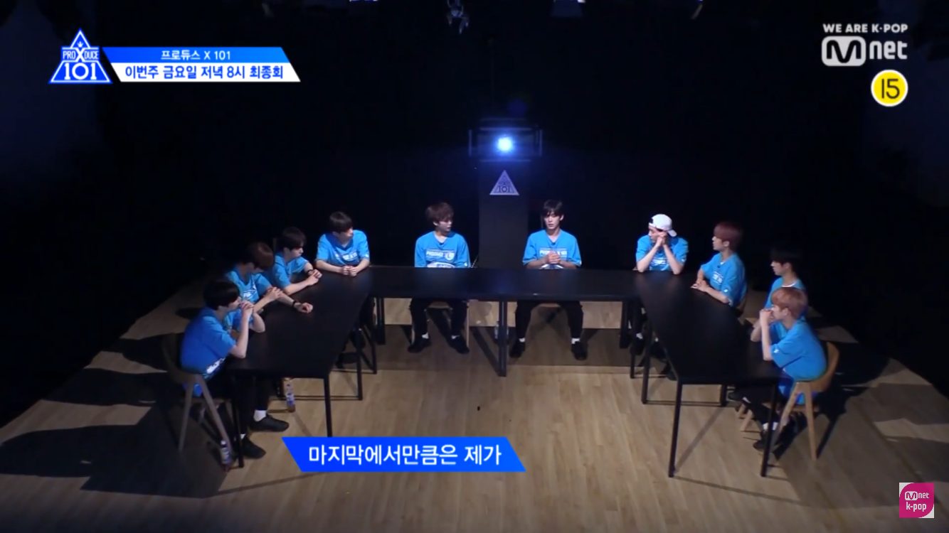 Sau đó, hai nhóm thực tập sinh ngồi tụ họp lại với nhau để trao đổi, bàn bạc và nói lên quyết tâm với vị trí center. Kim Yo Han bắt đầu: “Vì đây là lần cuối cùng, mình muốn đứng ở vị trí trung tâm”. Trong khi Kang Min Hee bình luận: “Trước đây mình chưa bao giờ có được vị trí trung tâm cả”.