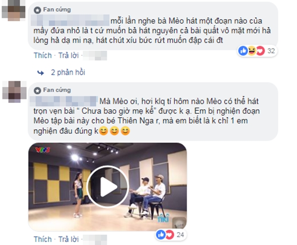 Việc Vũ Cát Tường luôn dành nhiều tâm huyết cho các thí sinh tại The Voice Kids - Giọng hát Việt nhí 2018 có lẽ không ai còn lạ gì, cô nàng có thể dành hàng giờ để chăm chút cho giọng hát cũng như tiết mục của các bé được chỉn chu và hoàn thiện nhất. Bên cạnh việc ngưỡng mộ tình cảm của cô Mèo, cư dân mạng bắt đầu “chuyển hướng” sang yêu cầu nữ ca sĩ hát hết những bài đã tập luyện cùng thí sinh. Cũng phải thôi, thỉnh thoảng chỉ hát mẫu một đoạn ngắn mà đã “say lòng” đến thế, chả trách người khác lại muốn nghe cho trọn vẹn.