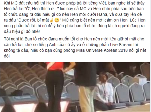 Nhiều fan lo lắng rằng việc nói tiếng mẹ đẻ lại cười thay vì trả lời khiến H'Hen Niê mất điểm nhưng rõ ràng, đây chỉ là buổi duyệt sân khấu chứ không phải nơi các thí sinh được chọn ngẫu nhiên thể hiện bản lĩnh. Có đến 74 thí sinh còn không được cười “ha hả” như H'Hen Niê vì họ không được MC gọi tên ngẫu nhiên.