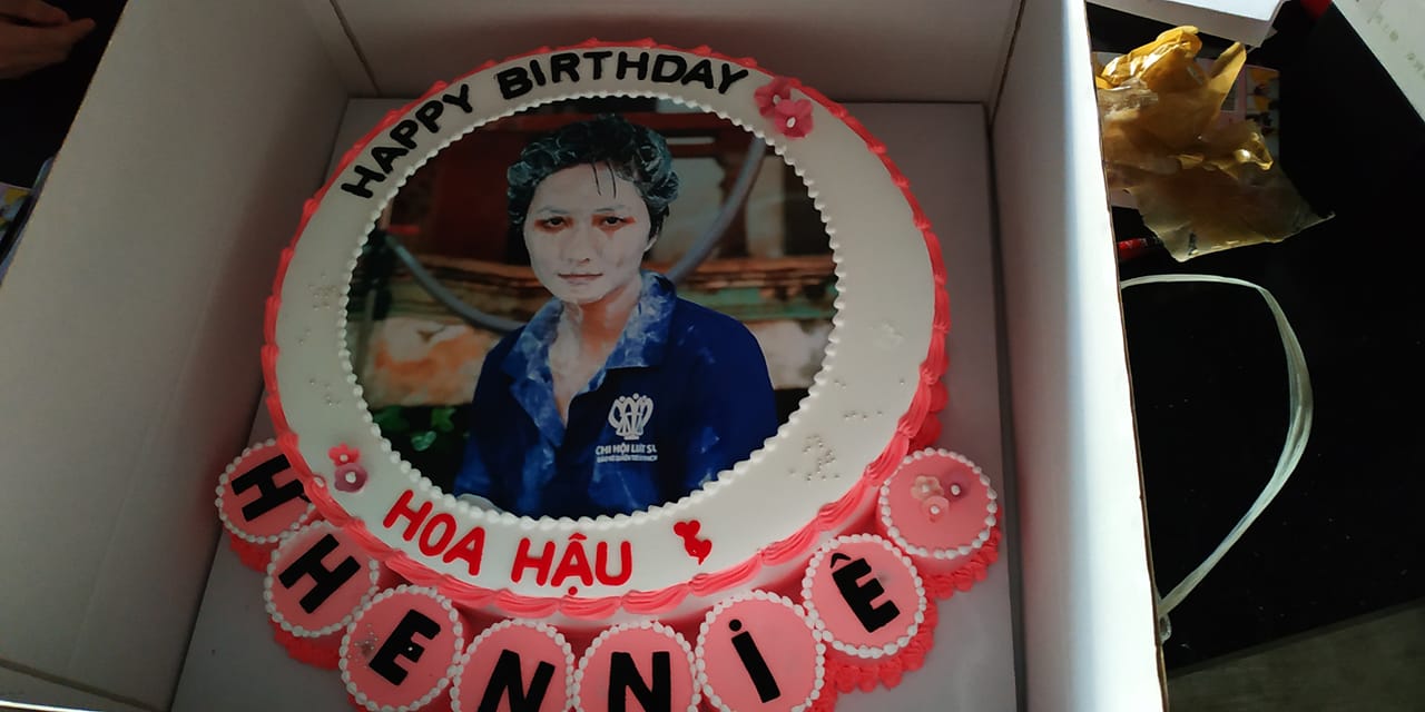 H'Hen Niê khui quà sinh nhật và đây là chiếc bánh gây buồn cười.