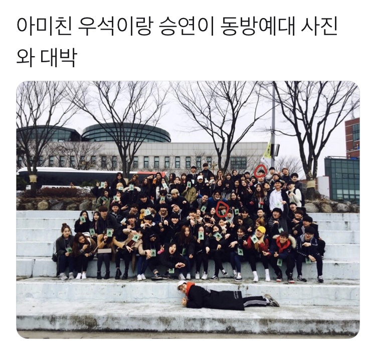 Mặt khác, người hâm mộ cũng phát hiện ra Kim Woo Seok và Cho Seung Yeon vốn là sinh viên khóa 16 tại Học viện nghệ thuật và truyền thông Dong Ah. Được biết, Seung Yeon theo học chuyên ngành âm nhạc Kpop, trong khi Woo Seok học chuyên ngành diễn xuất. Định mệnh đã khiến cả hai chụp chung một bức ảnh cùng với nhiều sinh viên khác.