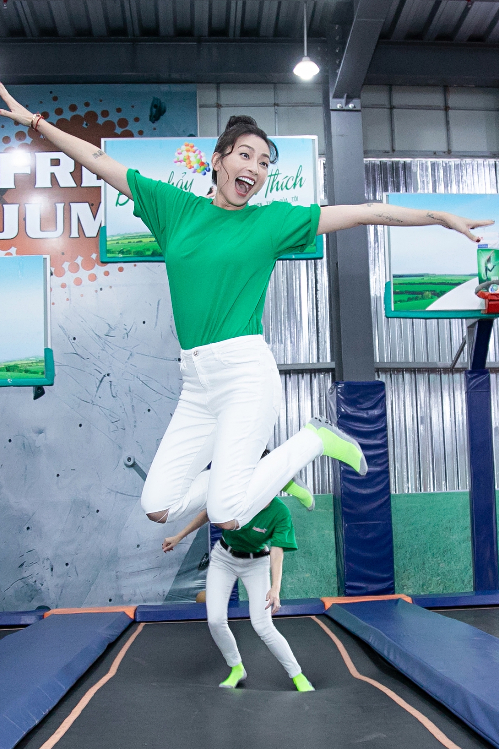Xuất hiện trong buổi giao lưu với vai trò đại sứ, Ngô Thanh Vân không chỉ có những chia sẻ mạnh mẽ về “nữ quyền” mà còn khiến các khách mời thích thú khi thoải mái tham gia trò chơi. Khác hẳn với hình ảnh mạnh mẽ có phần “dữ dằn” trên màn ảnh, hình ảnh “đả nữ” cười tít mắt trên tấm đệm nhún gần gũi hơn cũng như gây được nhiều thiện cảm với mọi người.