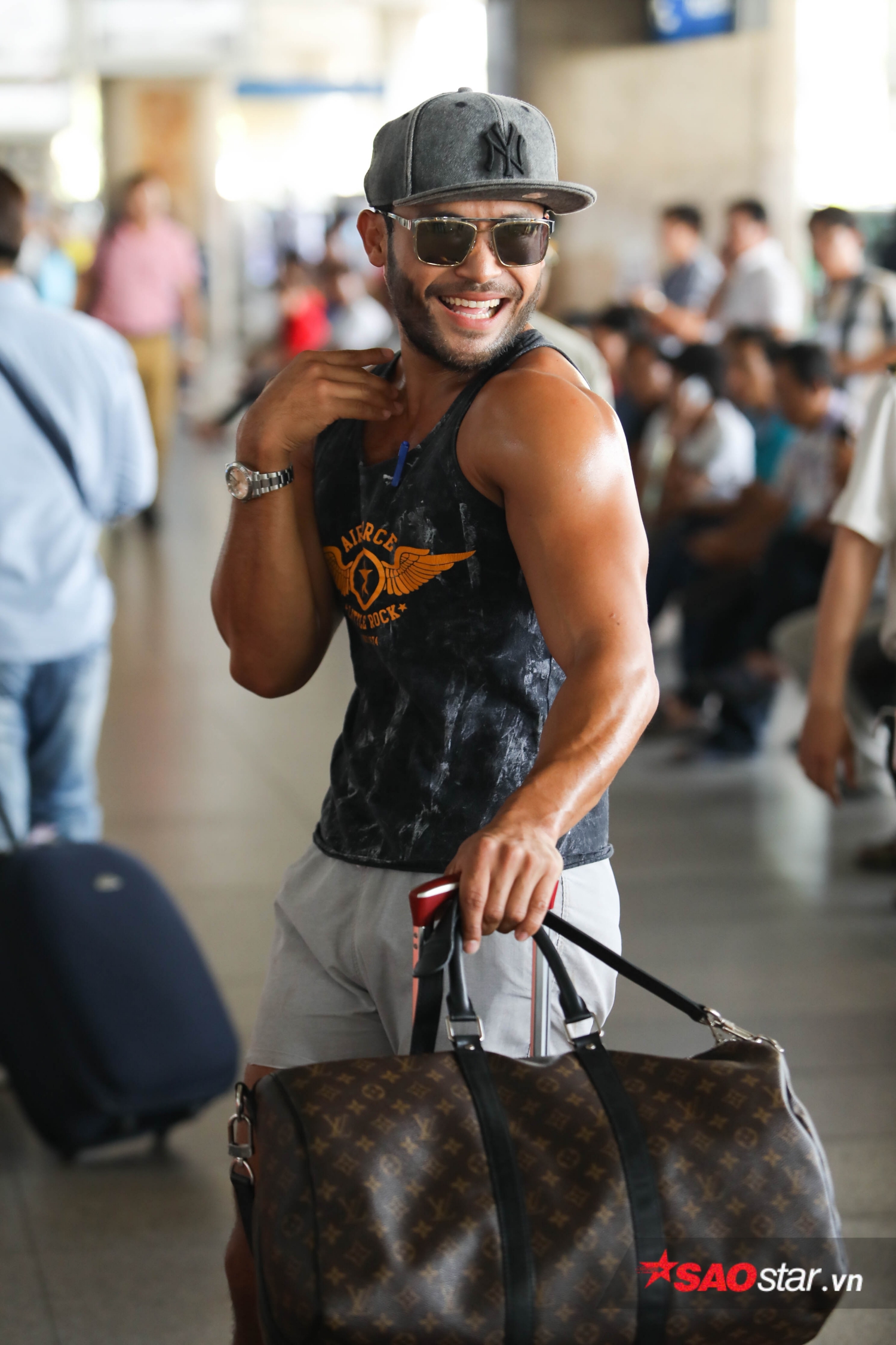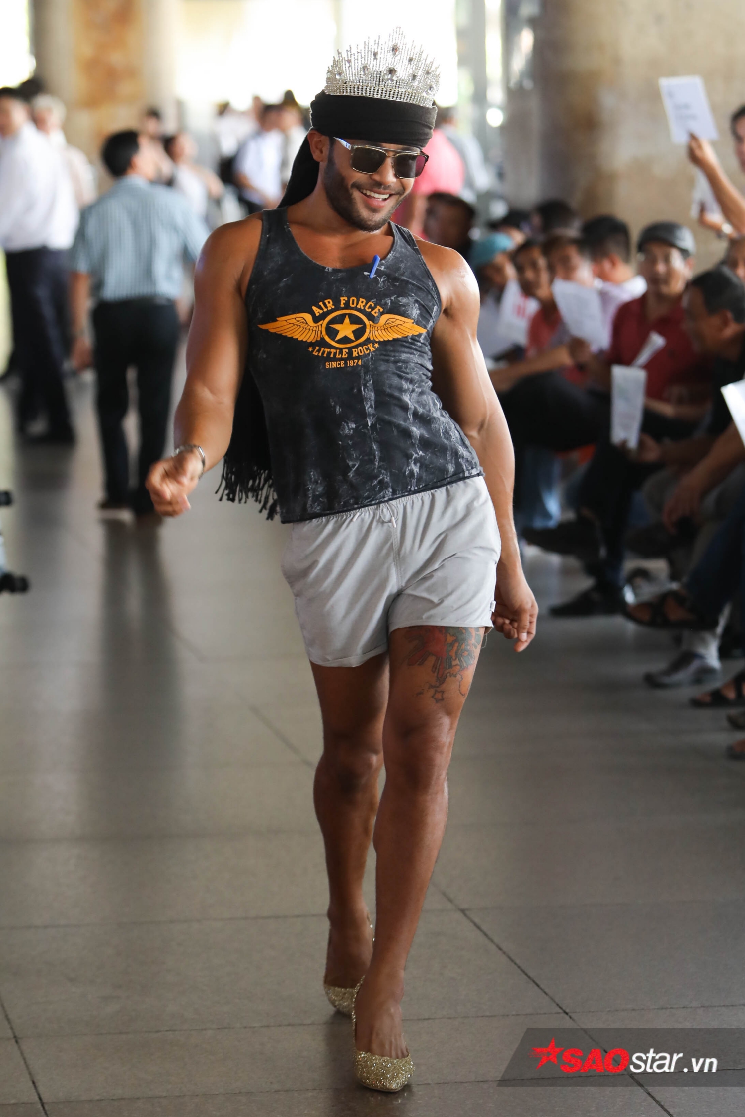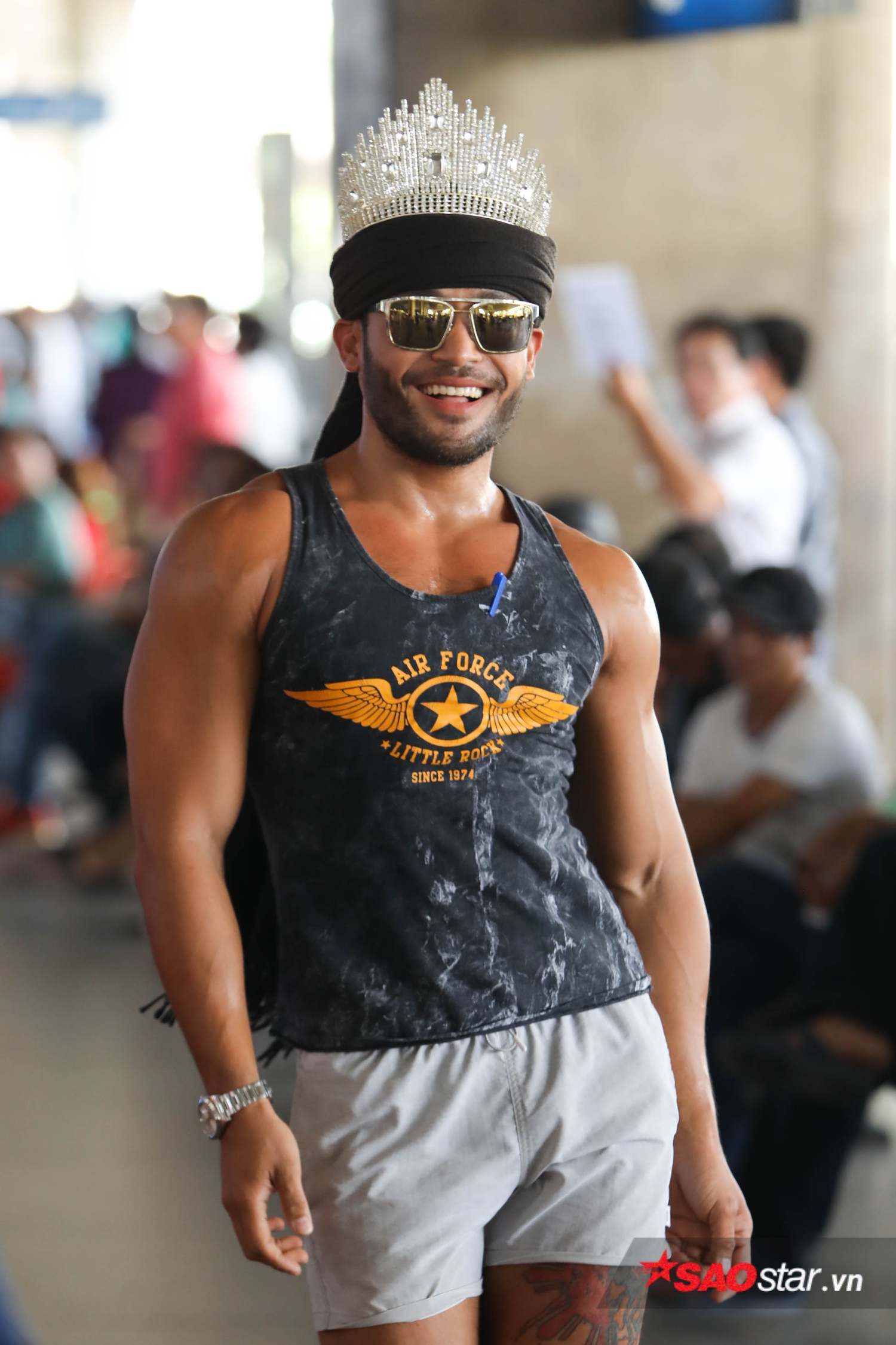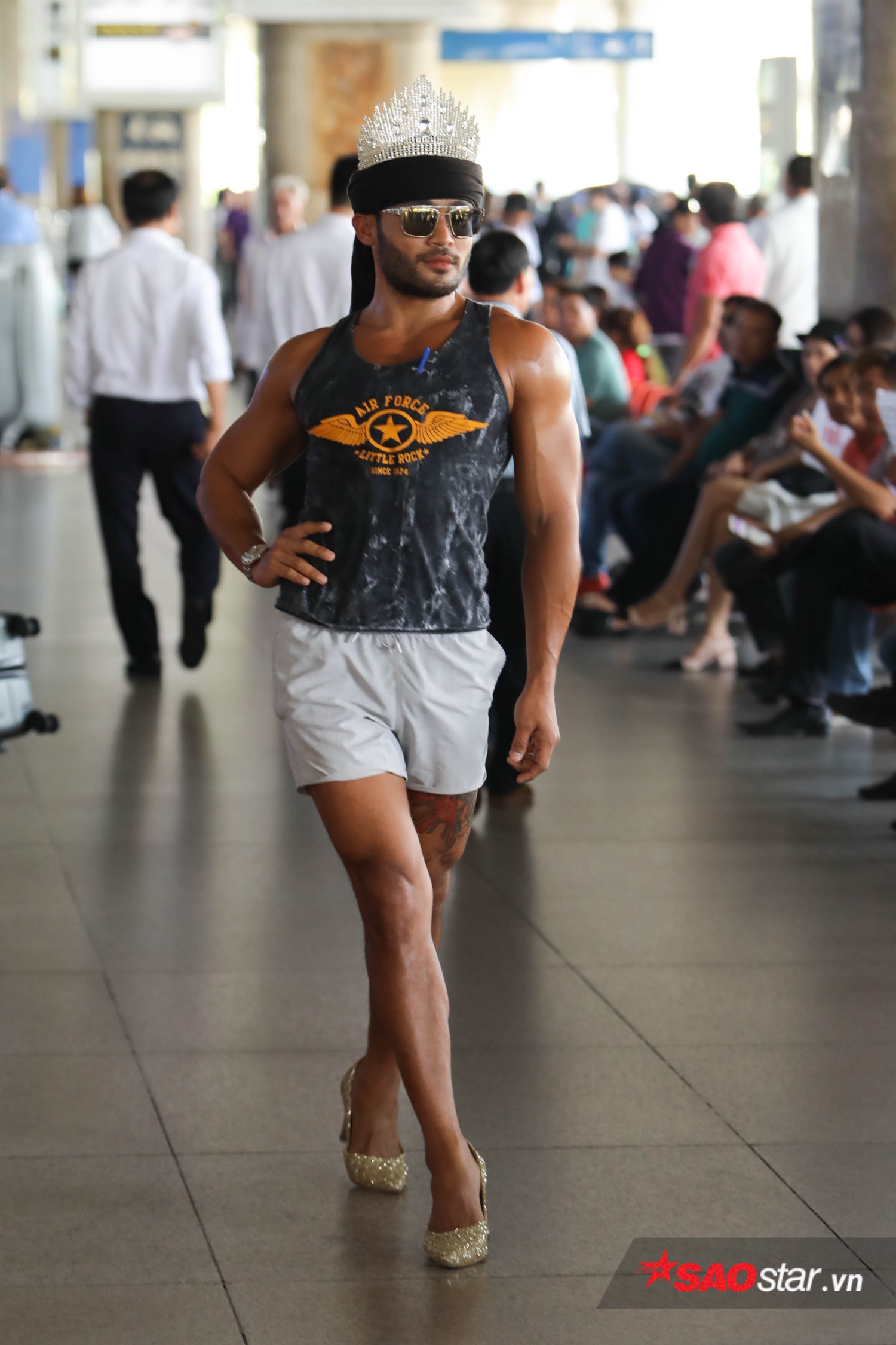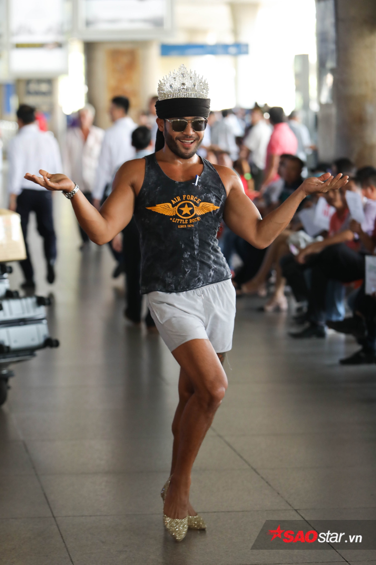 Chiều nay (2/5), anh chàng Philippines được mệnh danh “King of catwalk” Sinon Loresca đã đáp chuyến bay xuống sân bay Tân Sơn Nhất (TP. HCM) để bắt đầu hành trình đáng nhớ tại Việt Nam. Diện trang phục thường ngày để ứng biến với thời tiết quốc gia nhiệt đới nhưng Sinon lại bất ngờ đội vương miện và gây “náo loạn” sân bay với màn thả dáng đúng chất “Thánh catwalk”.