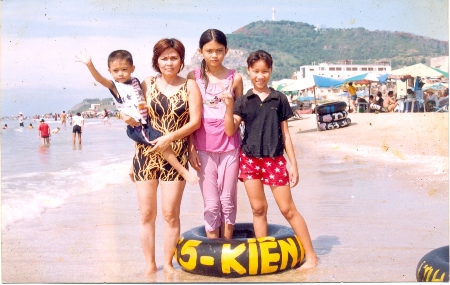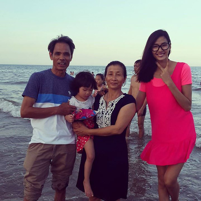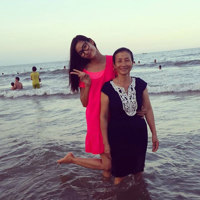 Mâu Thanh Thủy (áo hồng) và mẹ trong chuyến đi chơi. Từ rất lâu, vì mẹ đi làm xa nhà nên Mâu Thanh Thủy chỉ sống với ba và chị gái. Thủy xem chị gái giống như mẹ và bạn của mình.