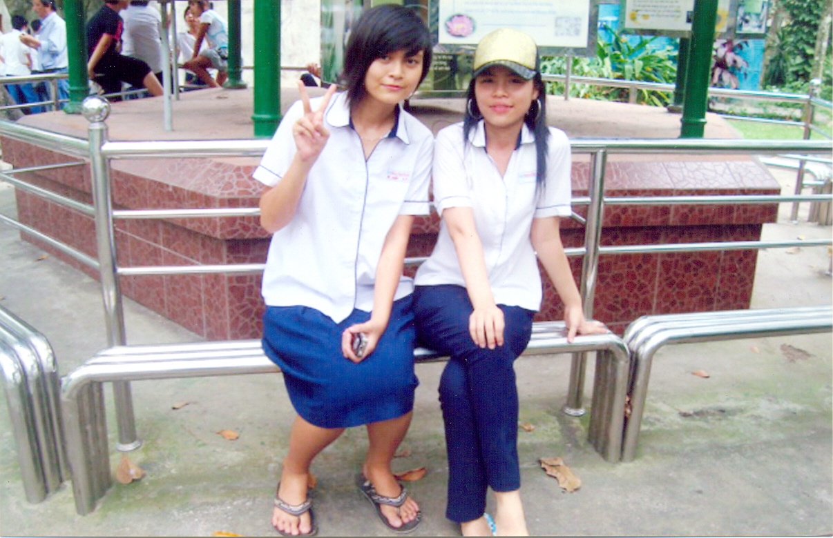 Mâu Thanh Thủy (trái) cùng với bạn học.