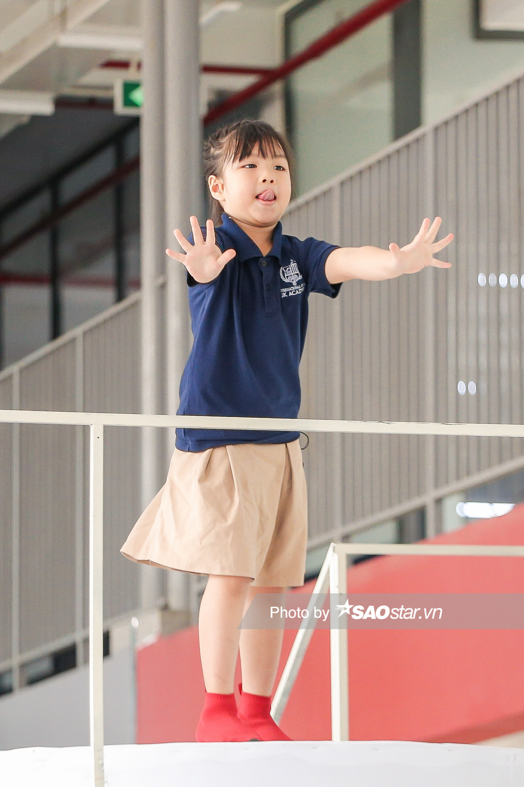 Không chỉ có năng khiếu vẽ, Yến Nhi còn nhảy giỏi. Trên bục dũng khí, cô bé cùng với 2 MC của chương trình thể hiện màn cover Ghen Cô Vy ấn tượng. Cô bé học lớp 1 cho biết, tất cả các động tác là do em tự học.