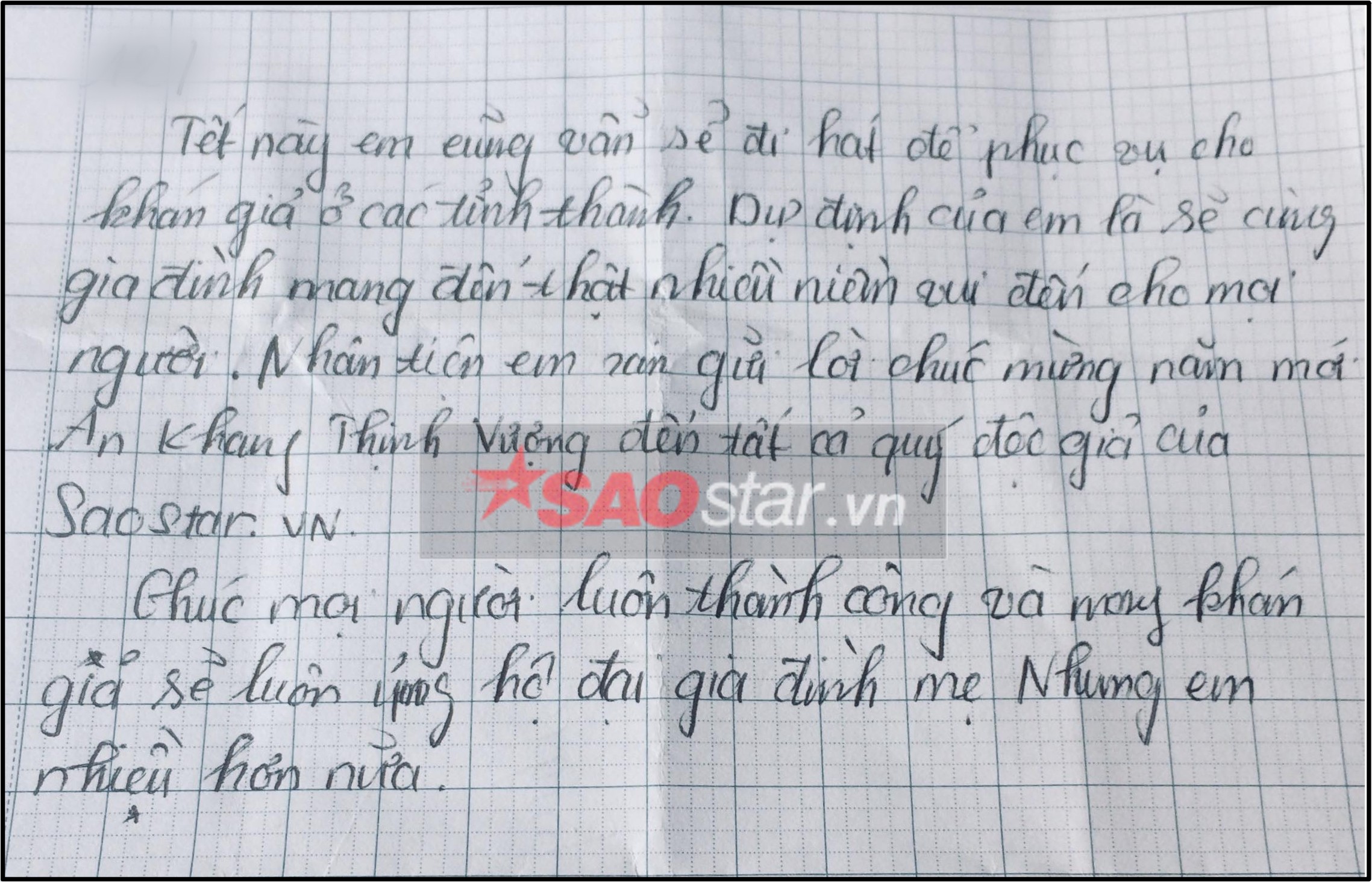 Lời chúc Tết viết tay chân tình của Tuyết Nhung.